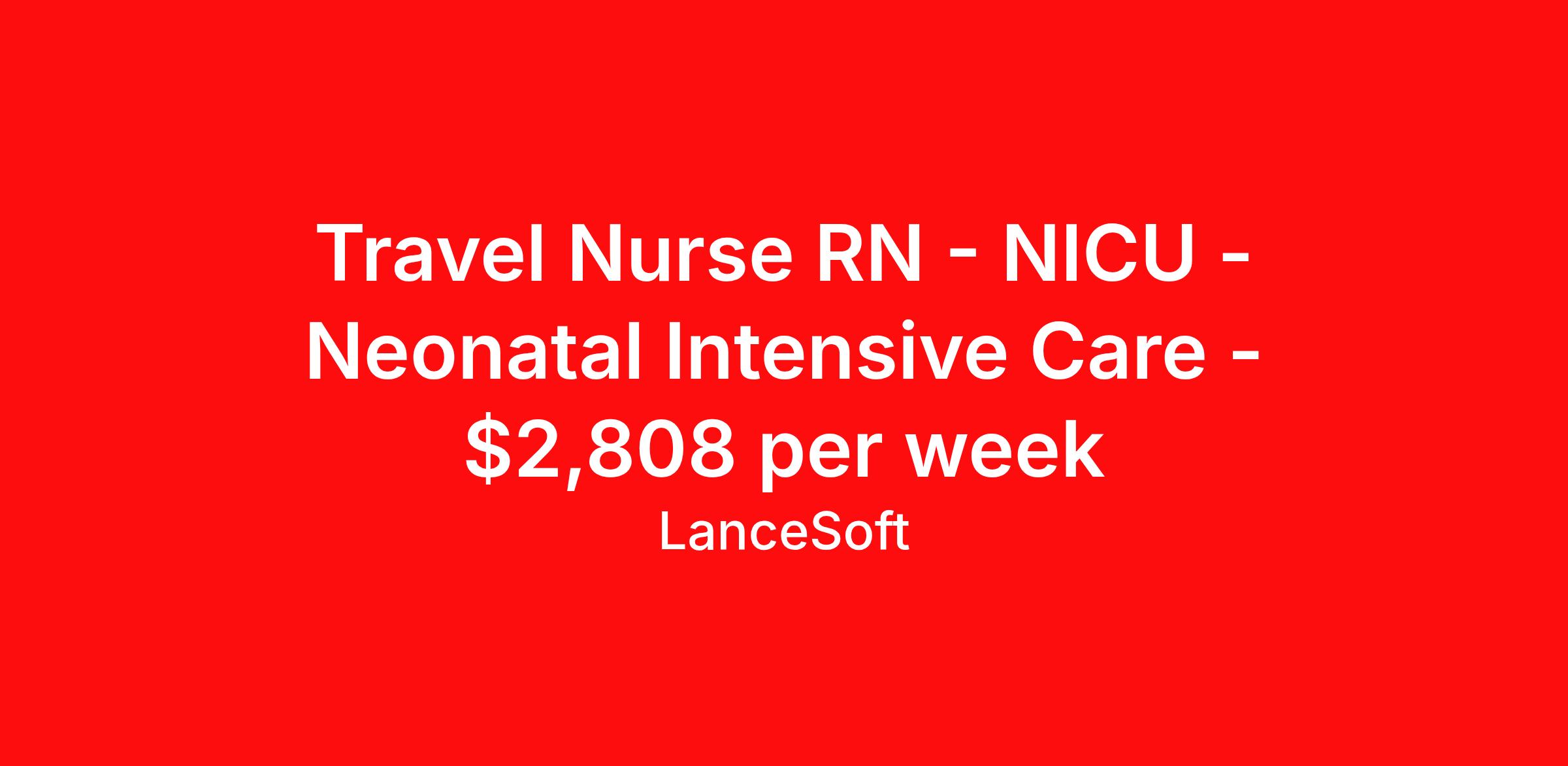 Travel Nurse RN - NICU - Neonatal Intensive Care - $2,808 per week