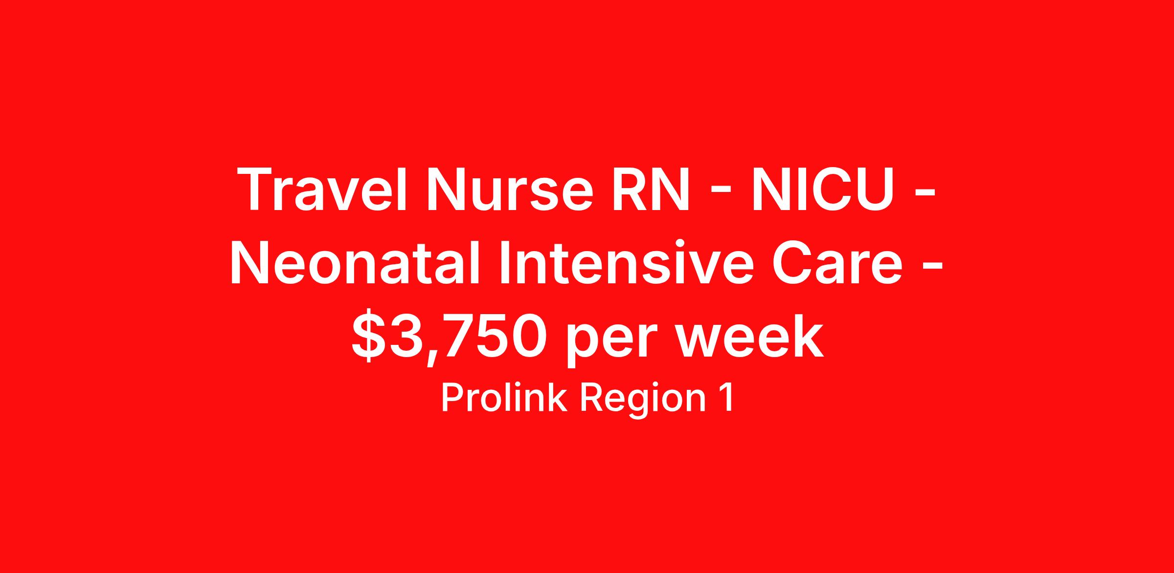 Travel Nurse RN - NICU - Neonatal Intensive Care - $3,750 per week