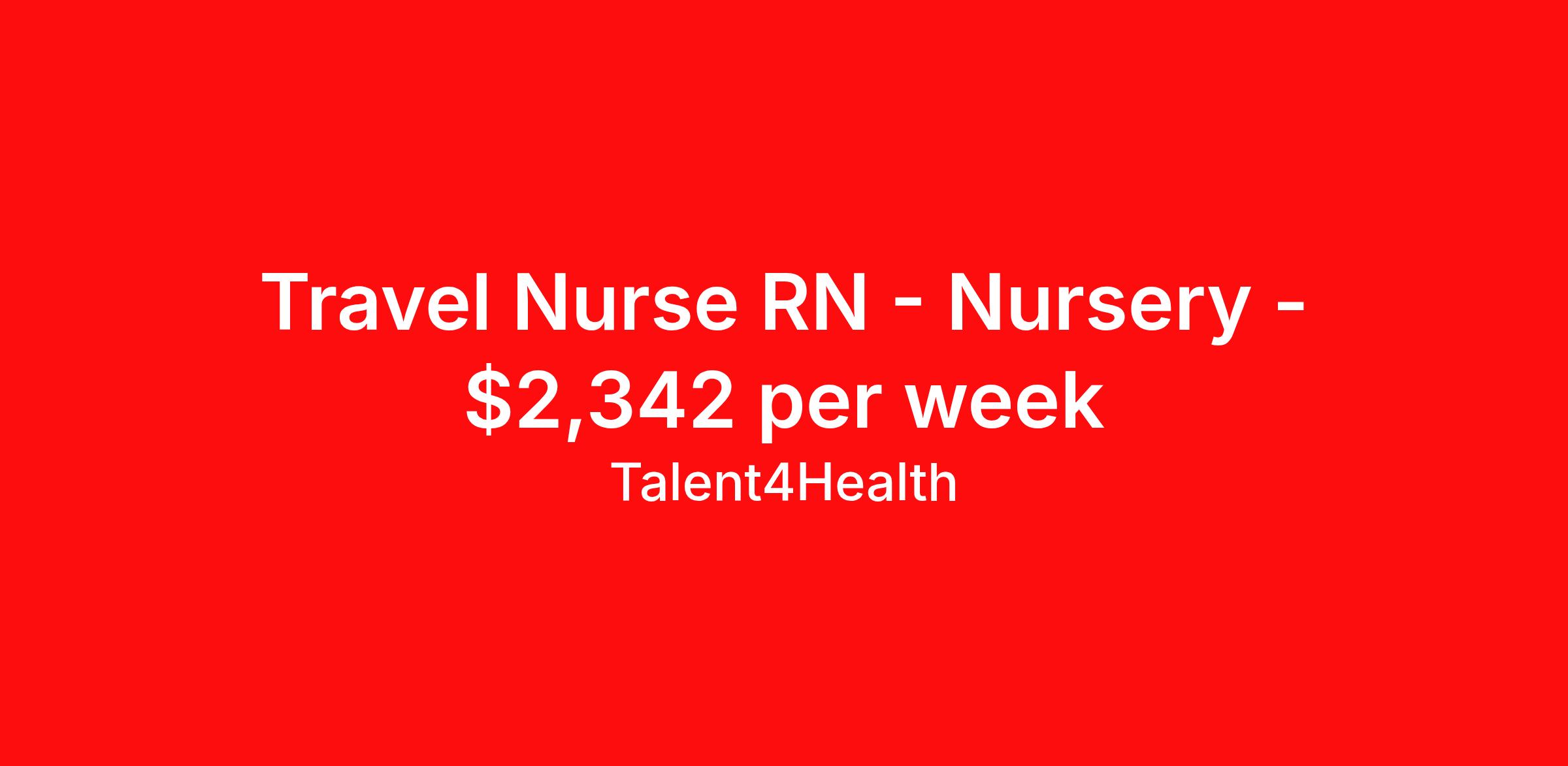 Travel Nurse RN - Nursery - $2,342 per week
