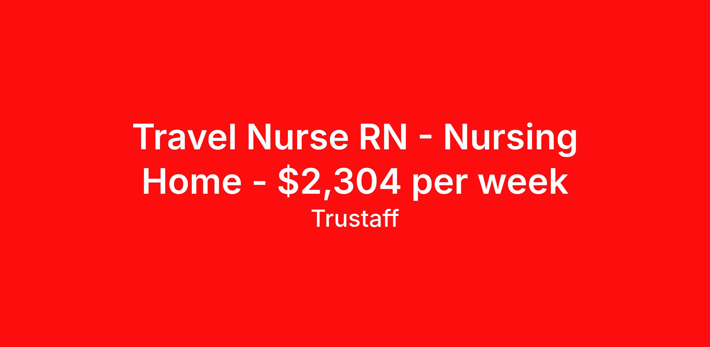 Travel Nurse RN - Nursing Home - $2,304 per week