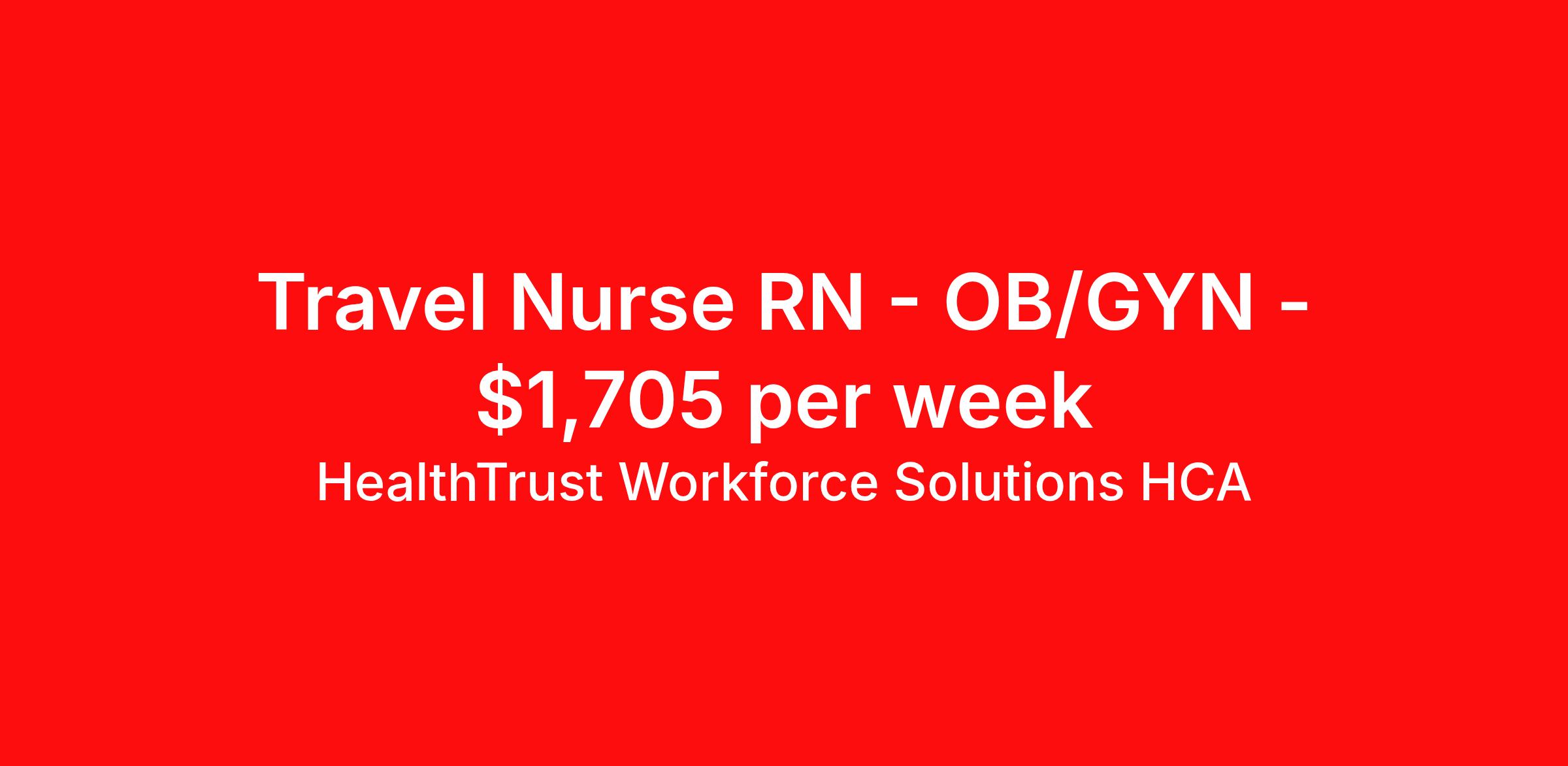 HealthTrust Workforce Solutions HCA is seeking a travel nurse RN OB/GYN for a travel nursing job in Corpus Christi, Texas. Job Description & Requirements Specialty: OB/GYN Discipline: RN Start Date: 04/06/2026 Duration: 13 weeks 36 hours per week Shift: 12 hours, days Employment Type: Travel BLS and NRP required Guaranteed hours, weekly pay and medical benefits. About HealthTrust Workforce Solutions HCA At HealthTrust Workforce Solutions, healthcare is not just about the four walls of a facility but about the people who provide and receive care. Our focus is on empowering healthcare professionals to deliver exceptional patient experiences by providing them with the necessary skills, tools, and support. We partner with healthcare facilities nationwide to ensure that the right professionals are in the right roles. We prioritize our clinicians by giving them a voice and access to opportunities to fulfill their mission of improving lives by providing quality patient care. We are committed to our core values of Trust, Innovation, Adaptability, Courage, and Accountability. We are dedicated to positively impacting the healthcare industry by providing first-priority access to more than 200,000 jobs nationwide to our healthcare professionals. Join us and be part of the HealthTrust family, where you can make a difference every day. We embrace our changing environment, and we maintain a culture that has a rich tradition of transforming itself to meet the challenges of the future. MISSION STATEMENT While putting great people in the right roles is essential, our mission is far greater. We want our clinicians to be part of the HealthTrust family, where healthcare professionals have a voice and are empowered with the right tools and opportunities to fulfill their personal mission of improving lives. Plus, as a preferred partner to thousands of top-performing hospitals, we provide our healthcare professionals with first-priority access to more than 200,000 jobs nationwide. Benefits Dental benefits Vision benefits Referral bonus Continuing Education Life insurance