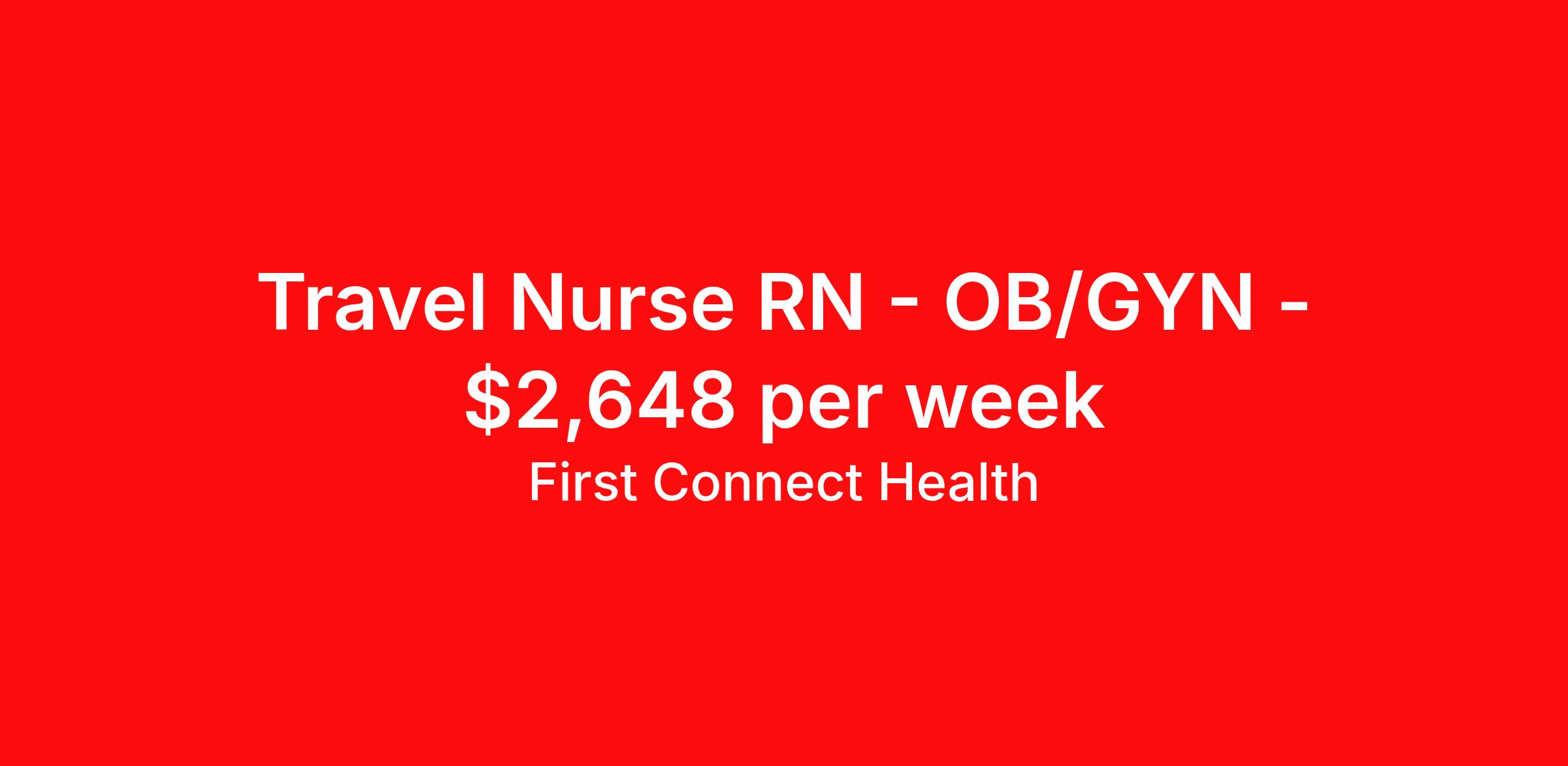 First Connect Health is seeking a travel nurse RN OB/GYN for a travel nursing job in Somerville, Massachusetts. Job Description & Requirements Specialty: OB/GYN Discipline: RN Start Date: 04/14/2026 Duration: 13 weeks 32 hours per week Shift: 8 hours, rotating Employment Type: Travel Position RN OBGYN (Registered Nurse – Women’s health) Location: Somerville, Massachusetts ⏰ GH: 32 hours/week Pay Gross Weekly: $2648 W2 Rate: $25/hr (taxable) Per-Diem: $1848/week (tax-free stipend) Requirements ⚕️ 2 years OBGYN experience ❤️ BLS certification Massachusetts RN license Eligible nurses can apply for this assignment. CHA Somerville Campus-NANC-0099 About First Connect Health At First Connect Health , we take pride in being a Joint Commission–certified healthcare staffing agency , headquartered in Newark, New Jersey. This prestigious certification is more than just a seal — it's a reflection of our commitment to excellence, safety, and quality in everything we do. By meeting the rigorous standards set by The Joint Commission, one of the most respected accrediting bodies in healthcare, we've demonstrated that our processes, compliance, and patient care standards are aligned with the highest levels of quality in the industry. But our dedication goes beyond certifications. Nurses choose First Connect Health because: ✅ Trust and Transparency: We foster honest communication, timely updates, and full transparency throughout your placement journey. ✅ Best Pay & Benefits: We offer industry-leading compensation packages, along with benefits that support your career goals. ✅ Flexibility & Choice: Whether you're seeking short-term assignments, long-term contracts, or local opportunities, we provide the flexibility to suit your preferences. ✅ Personalized Support: Our recruiters take the time to understand your needs, guiding you with care, respect, and responsiveness at every step. When you work with First Connect Health, you're not just another number — you're a valued professional. Join a team that’s focused on your success, your well-being, and your future in healthcare. Benefits Medical benefits Sick pay 401k retirement plan Weekly pay Referral bonus