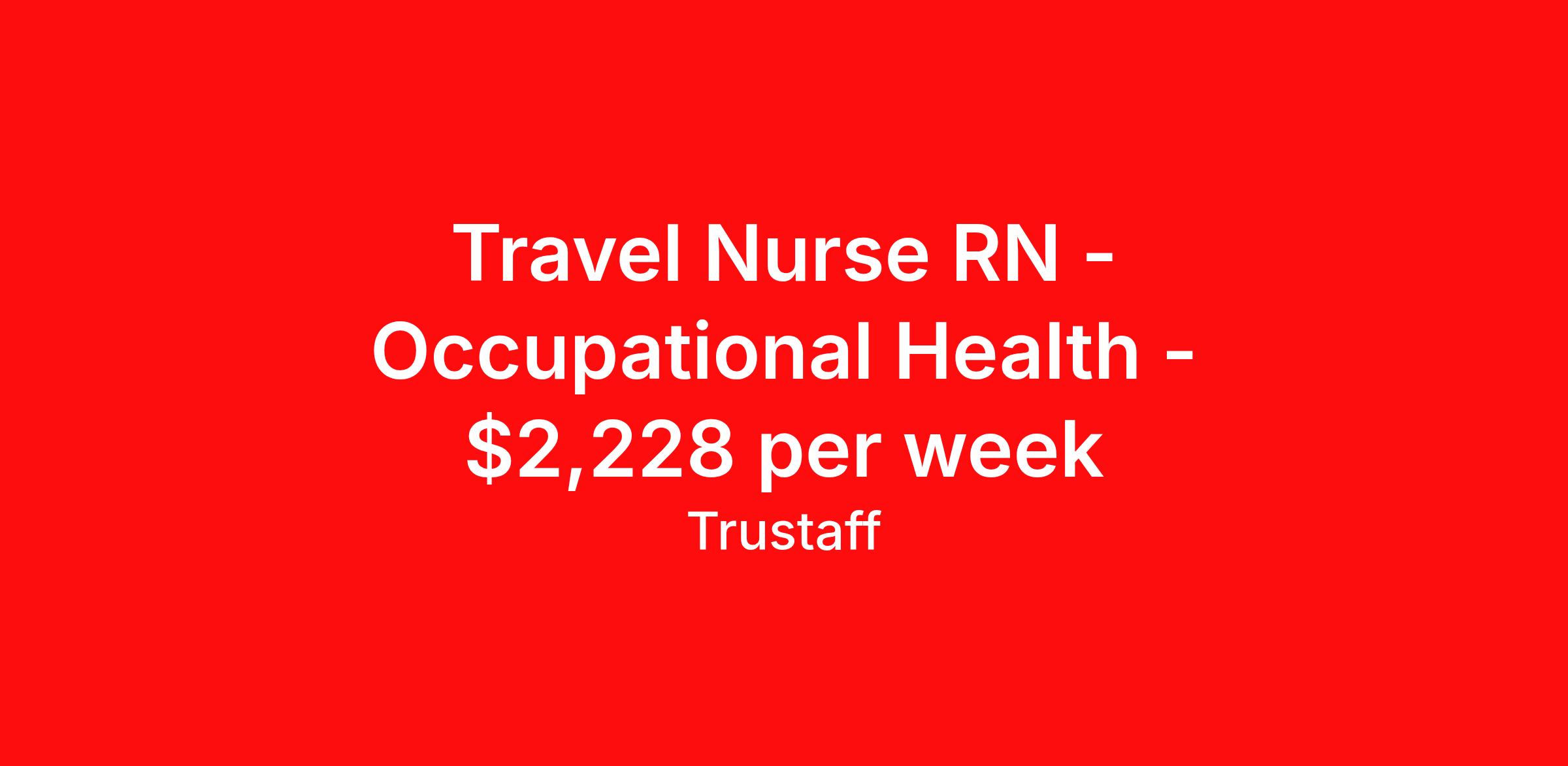 Travel Nurse RN - Occupational Health - $2,228 per week