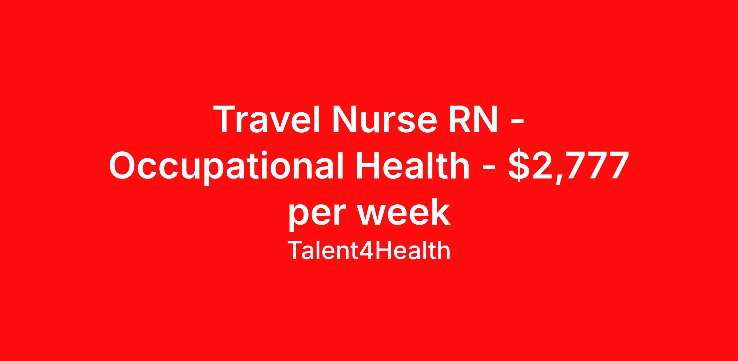 Travel Nurse RN - Occupational Health - $2,777 per week
