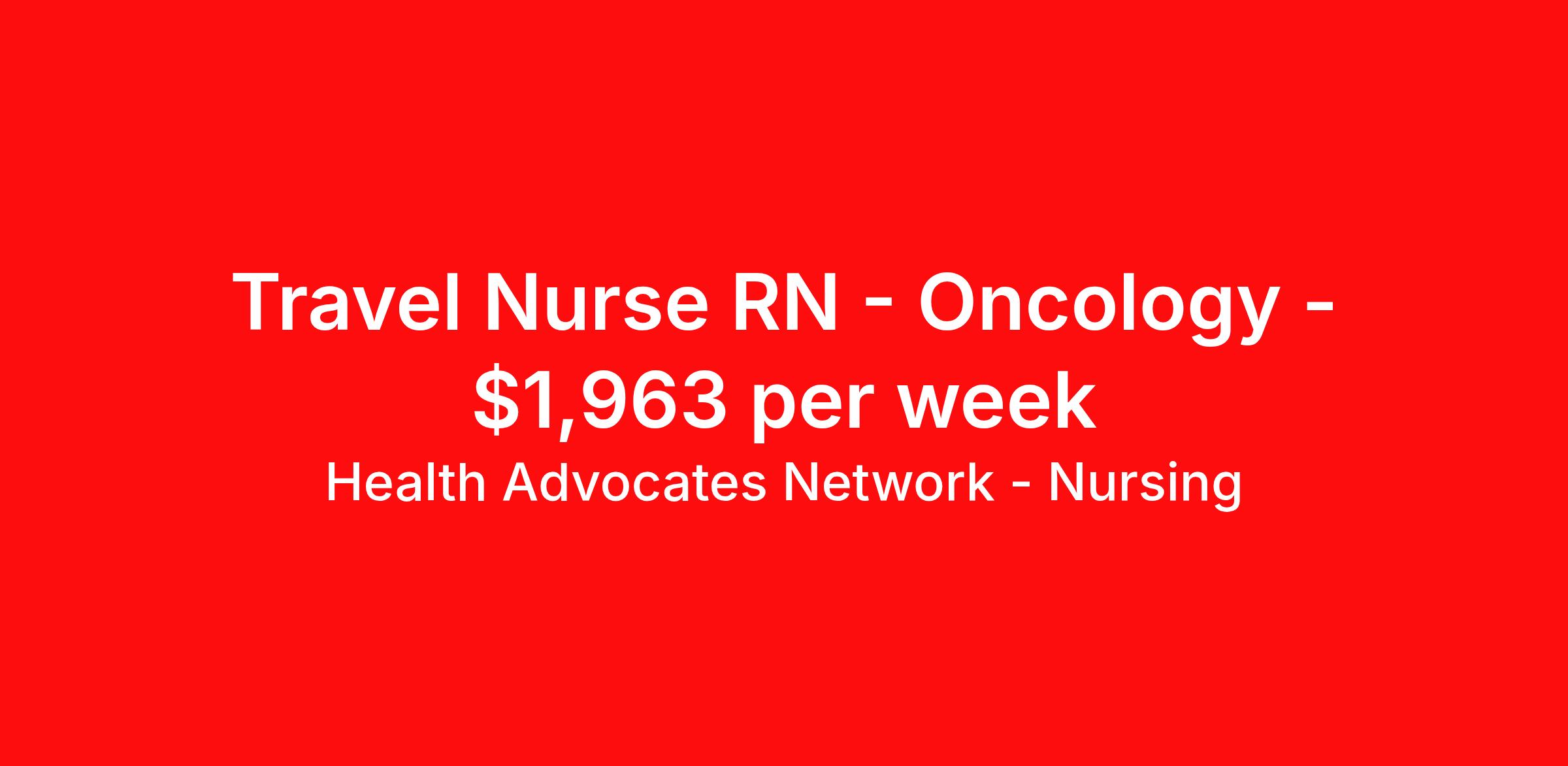Health Advocates Network - Nursing is seeking a travel nurse RN Oncology for a travel nursing job in Asheville, North Carolina. Job Description & Requirements Specialty: Oncology Discipline: RN Start Date: ASAP Duration: 26 weeks 36 hours per week Shift: 12 hours, nights Employment Type: Travel HANStaff Job ID 456158. Pay package is based on 12 hour shifts and 36 hours per week (subject to confirmation) with tax-free stipend amount to be determined. Posted job title: RN - Oncology About Health Advocates Network - Nursing Health Advocates Network was founded on the basis of a shared aspiration, to improve the way healthcare staffing is done. We are a company established and led by nurses. Our flexible approach enables us to develop solutions customized to your specific needs. From short- and long-term travel contracts to local and per diem assignments and more, we are here to get you to your next adventure! By solving challenges, providing the best placements, and advocating for you, we stand to help you thrive and pave the path forward in your career. Click on the videos below to learn more about our values!
