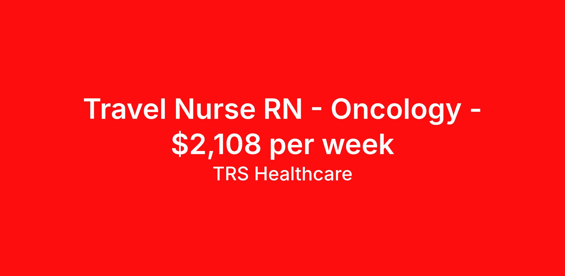 TRS Healthcare is seeking a travel nurse RN Oncology for a travel nursing job in Atlanta, Georgia. Job Description & Requirements Specialty: Oncology Discipline: RN Start Date: ASAP Duration: 13 weeks 40 hours per week Shift: 8 hours, days Employment Type: Travel TRS Healthcare Job ID 1322016. Pay package is based on 8 hour shifts and 40 hours per week (subject to confirmation) with tax-free stipend amount to be determined. Posted job title: Oncology Registered Nurse About TRS Healthcare TRS Healthcare has been a leader in the healthcare staffing industry for over 25 years, providing exceptional career opportunities for travel nurses and allied health professionals. An RN-founded, woman-owned company, TRS Healthcare has team members in all 50 states. We recruit and support registered nurses, licensed practical nurses, surgical technicians, respiratory therapists, imaging technologists, laboratory specialists, and other experienced nursing and allied healthcare professionals. We staff hundreds of healthcare facilities across the U.S. in urban, rural, and underserved areas, including multi-state hospital systems, critical access hospitals, rural community hospitals, long-term care facilities, trauma centers, standalone clinics, and more. Learn more about TRS Healthcare at trshealthcare.com .