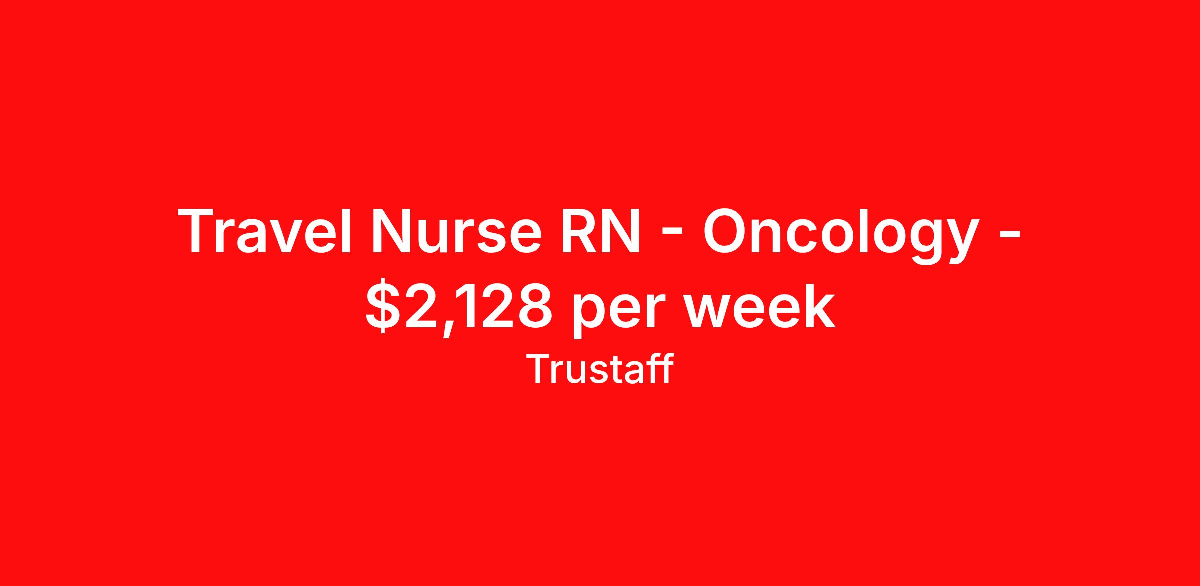 Trustaff is seeking a travel nurse RN Oncology for a travel nursing job in Lancaster, South Carolina. Job Description & Requirements Specialty: Oncology Discipline: RN Start Date: 04/06/2026 Duration: 13 weeks 40 hours per week Shift: 8 hours, days Employment Type: Travel As an Oncology Nurse, you'll provide and supervise nursing care for cancer patients. Oncology RNs monitor patient condition, administer medications, and you'll educate cancer patients about treatment options and particularities of the disease. Trustaff Job ID 990491. Pay package is based on 8 hour shifts and 40 hours per week (subject to confirmation) with tax-free stipend amount to be determined. Posted job title: M/S Oncology About Trustaff Our nurse-first attitude has set us apart from other travel nursing agencies When you join the Trustaff family, you’re more than just a body filling a role—you're a vibrant individual with dreams and aspirations. As one of the nation's leading travel nursing companies, your recruiter will work with you one-on-one to guide your career and help you achieve your goals. You decide when and where you want to work Enjoy industry-leading pay, benefits, and bonuses Experience new people and places Grow your clinical skills and expand your experience Travel nursing lets you take your professional career to the next level while maintaining your flexibility and freedom. At Trustaff, we put you first, so you never have to compromise your work or pay. We are proud to have one of the highest nurse retention rates in the country. Some of the other reasons people choose us include: Priority access to thousands of travel nursing jobs Industry-leading pay Guaranteed weekly hours Experienced recruiters Comprehensive benefits, including medical, dental, and vision 401k with employer match Assistance with travel, compliance, and housing Great bonuses for completions, referring friends, and more Benefits Weekly pay Guaranteed Hours Wellness and fitness programs Referral bonus Medical benefits Dental benefits Vision benefits