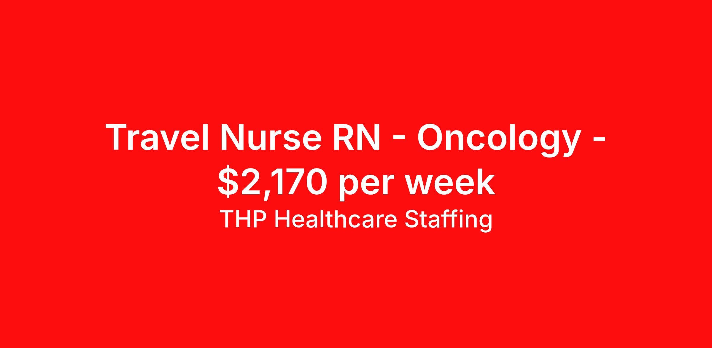 THP Healthcare Staffing is seeking a travel nurse RN Oncology for a travel nursing job in Augusta, Georgia. Job Description & Requirements Specialty: Oncology Discipline: RN Start Date: 04/13/2026 Duration: 16 weeks 36 hours per week Shift: 12 hours, nights Employment Type: Travel Our Client is currently seeking RN - Oncology positions in Augusta, GA for a 3x12 Nights shift. You must have current State Licensure and at least 1 year of recent experience. Requirements Current Resume State Licensure Current BLS and/or ACLS and/or Specialty Certifications 2 Current Clinical References Physical (Within 12 Months) TB Skin Test (Within 12 Months) Titers - MMR/Hep B/Varicella Respiratory Fit Test (Within 12 Months) Current - Tdap/Flu Vaccinations Must be able to pass pre-employment, background and urine drug screening Compensation and Benefits Compettive Pay Packages Health Benefit Package Travel pay - 1st pay check Extending Contract Bonus Refer a friend and earn extra cash! At THP Healthcare Staffing, we take care of you - work with us, not for us! THP Healthcare Staffing Job ID 17972231. Pay package is based on 12 hour shifts and 36.0 hours per week (subject to confirmation) with tax-free stipend amount to be determined. Posted job title: RN:Oncology,19:00:00-07:00:00 About THP Healthcare Staffing At THP Staffing, we specialize in connecting healthcare facilities with highly skilled travel nurses and allied health professionals who bring exceptional care and expertise wherever they go. Our mission is to ensure that every healthcare provider has access to top nursing talent, regardless of location, to deliver superior patient outcomes. Benefits Weekly pay Life insurance Pet insurance License and certification reimbursement Medical benefits Employee assistance programs Referral bonus Vision benefits Holiday Pay Health savings account