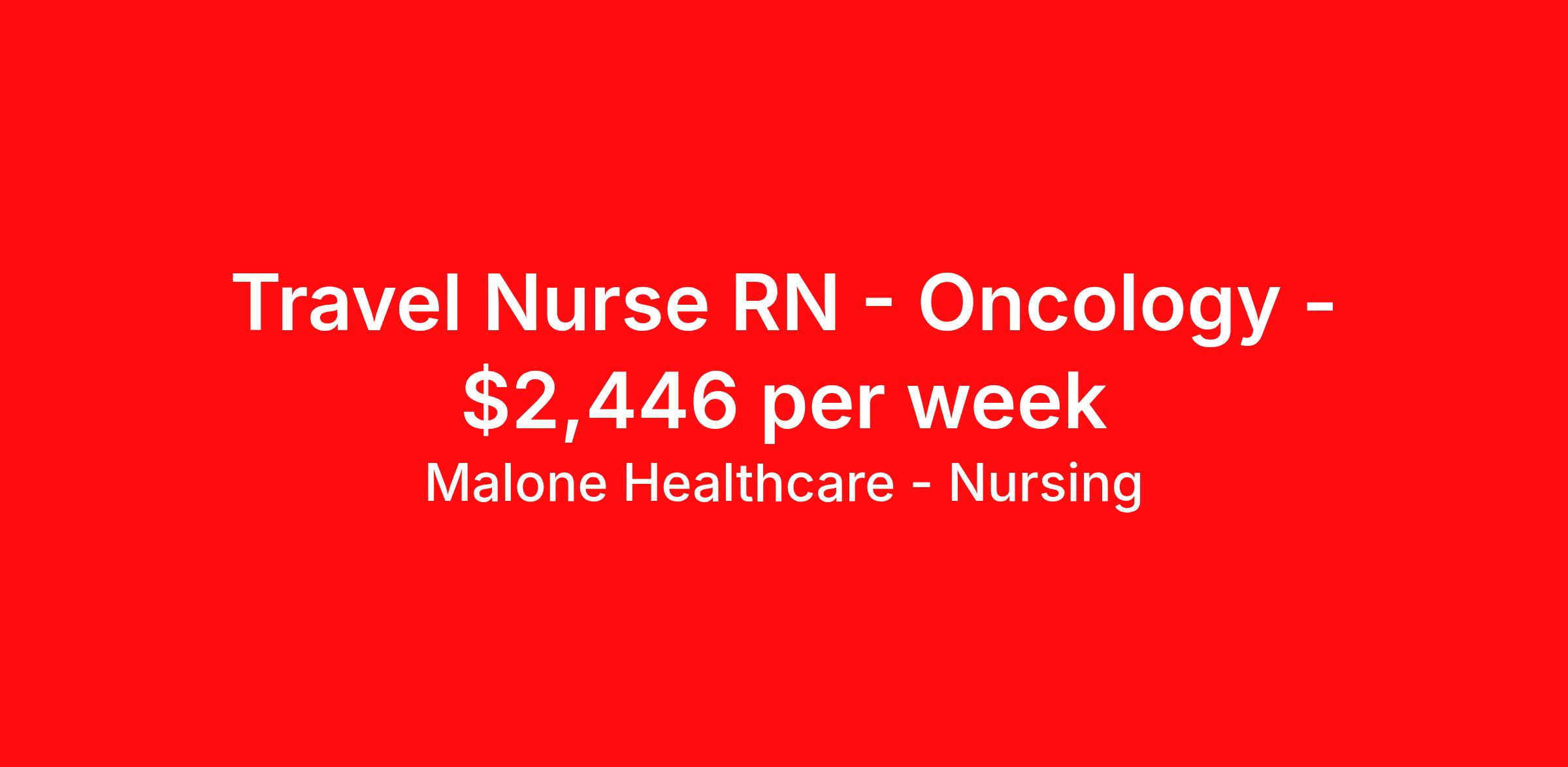 Malone Healthcare - Nursing is seeking a travel nurse RN Oncology for a travel nursing job in Des Moines, Iowa. Job Description & Requirements Specialty: Oncology Discipline: RN Start Date: 04/15/2026 Duration: 13 weeks 40 hours per week Shift: 8 hours, days Employment Type: Travel About Malone Healthcare - Nursing With a commitment to providing a higher standard of service and experience in patient care, Malone Healthcare places expert nurses and allied health professionals in rewarding careers throughout the United States. As a leading healthcare staffing agency, Malone’s focus on compliance and integrity translates to a seamless experience for our team members and partner facilities. When you work with Malone Healthcare, you can rely on over 50 years of proven experience placing exceptional professionals in quality healthcare settings. Benefits Weekly pay Holiday Pay Guaranteed Hours Continuing Education 401k retirement plan Pet insurance Referral bonus Medical benefits Dental benefits Vision benefits License and certification reimbursement Life insurance