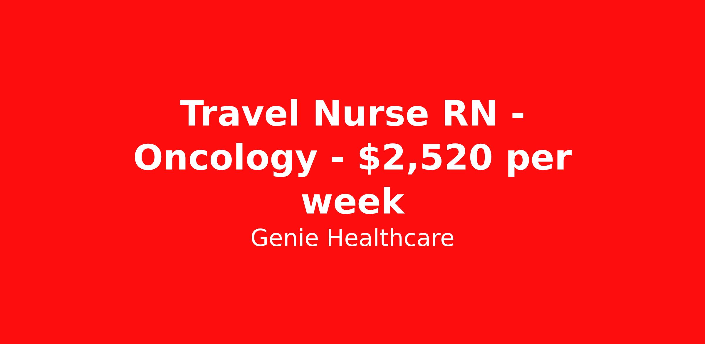 Genie Healthcare is seeking a travel nurse RN Oncology for a travel nursing job in Des Moines, Iowa. Job Description & Requirements Specialty: Oncology Discipline: RN Start Date: 04/13/2026 Duration: 13 weeks 40 hours per week Shift: 8 hours, days Employment Type: Travel minimum of 12 months Oncology experience in clinic/ambulatory setting [required] will accepted 1st time traveler IF they have at least 24 months of oncology experience [highly preferred] EPIC (beacon) experience strongly encouraged Port competency experience [required] Phlebotomy experience [required] About Genie Healthcare Genie Healthcare is one of the fastest growing Nurse Travel Agencies in the USA. Genie serves hundreds of facilities and has over 4000 current travel RN contracts open at any given time. Genie provides travel RN’s flexibility, support, top pay scale, housing and the 1 rated, multi-state health insurance coverage. Genie Healthcare carries with it a commitment to providing a comprehensive level of service and quality care. Growing from a small team of eager recruiters to a company with satisfied clients in nearly every corner of the nation, delivering excellence in patient and customer care is the key to Genie’s success. The management team has 20 years of experience in workforce solutions and staffing in medical and non-medical fields, roles ranging from Clerical job to Cardiologist to software developer to CEO.