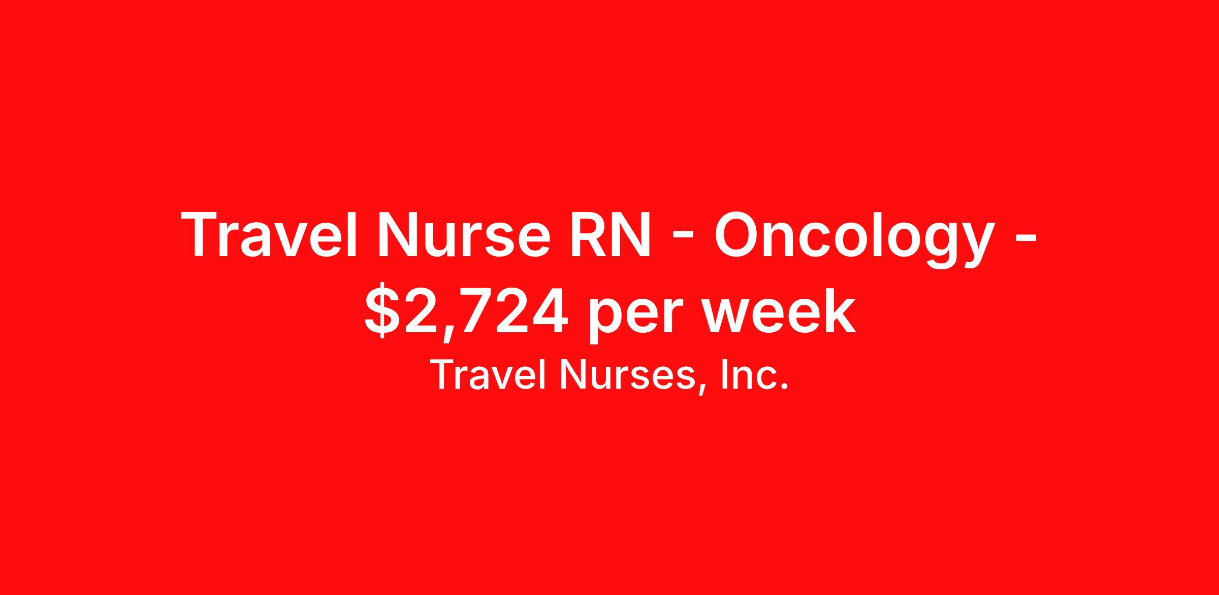Travel Nurses, Inc. is seeking a travel nurse RN Oncology for a travel nursing job in Chico, California. Job Description & Requirements Specialty: Oncology Discipline: RN Start Date: ASAP Duration: 13 weeks 36 hours per week Shift: 12 hours Employment Type: Travel Travel Nurses, Inc. Job ID 297242. Pay package is based on 12 hour shifts and 36 hours per week (subject to confirmation) with tax-free stipend amount to be determined. Posted job title: NOC - CA RN Oncology Unit About Travel Nurses, Inc. Travel Nurses, Inc. is a leading healthcare staffing agency that provides healthcare professionals with opportunities to work across the country. Founded by nurses in 1988, TNI has more than 30 years of experience in the industry. The agency initially focused on staffing operating room settings in the MidSouth. However, this quickly evolved to encompass all nursing specialties and allied health fields nationwide. At the heart of our mission is a profound respect for nurses, whom we consider the cornerstone of healthcare. This acknowledgment extends beyond the nursing profession alone. Travel Nurses, Inc. now proudly embraces a wide array of healthcare professionals, recognizing their crucial roles in our collective mission. Travel Nurses, Inc. is dedicated to providing comprehensive support and opportunities that will help facilitate complete career mobility in the healthcare field. Our commitment to transparency ensures that all professionals, not just nurses, can confidently accept any assignment without financial uncertainties. We prioritize our professionals’ well-being with comprehensive benefits packages, including day-one healthcare coverage, competitive salaries, bonuses and incentives. This underscores our unwavering commitment to offering the best possible rewards and support for all the professionals we serve. Benefits Weekly pay Continuing Education 401k retirement plan Wellness and fitness programs Mileage reimbursement Referral bonus Employee assistance programs Medical benefits Dental benefits Vision benefits Benefits start day 1 License and certification reimbursement Life insurance Retention bonus