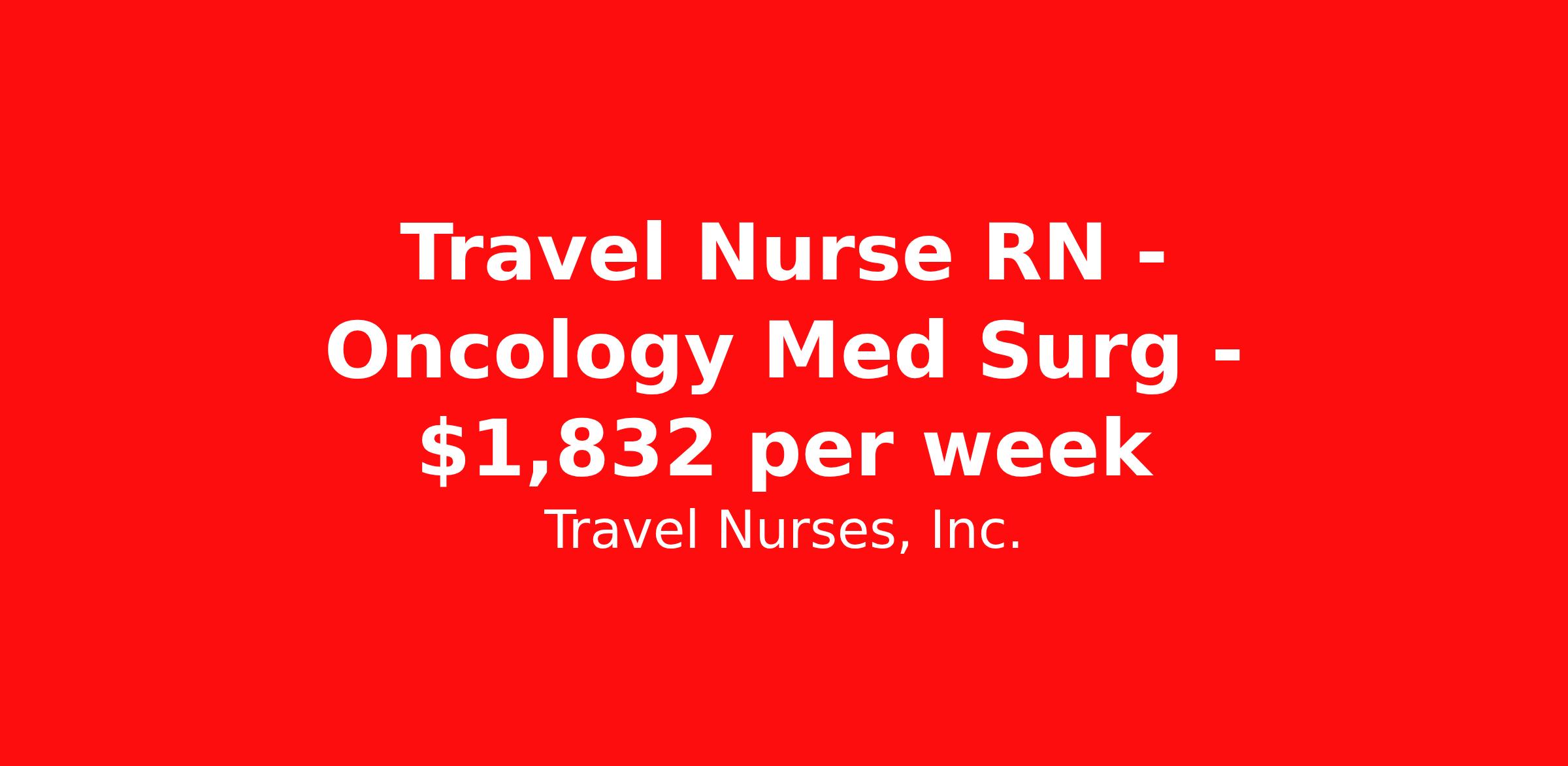 Travel Nurses, Inc. is seeking a travel nurse RN Oncology Med Surg for a travel nursing job in Anderson, South Carolina. Job Description & Requirements Specialty: Oncology Discipline: RN Start Date: 04/06/2026 Duration: 13 weeks 36 hours per week Shift: 12 hours Employment Type: Travel Travel Nurses, Inc. Job ID 309473. Pay package is based on 12 hour shifts and 36 hours per week (subject to confirmation) with tax-free stipend amount to be determined. Posted job title: Medical Surgical Oncology Registered Nurse About Travel Nurses, Inc. Travel Nurses, Inc. is a leading healthcare staffing agency that provides healthcare professionals with opportunities to work across the country. Founded by nurses in 1988, TNI has more than 30 years of experience in the industry. The agency initially focused on staffing operating room settings in the MidSouth. However, this quickly evolved to encompass all nursing specialties and allied health fields nationwide. At the heart of our mission is a profound respect for nurses, whom we consider the cornerstone of healthcare. This acknowledgment extends beyond the nursing profession alone. Travel Nurses, Inc. now proudly embraces a wide array of healthcare professionals, recognizing their crucial roles in our collective mission. Travel Nurses, Inc. is dedicated to providing comprehensive support and opportunities that will help facilitate complete career mobility in the healthcare field. Our commitment to transparency ensures that all professionals, not just nurses, can confidently accept any assignment without financial uncertainties. We prioritize our professionals’ well-being with comprehensive benefits packages, including day-one healthcare coverage, competitive salaries, bonuses and incentives. This underscores our unwavering commitment to offering the best possible rewards and support for all the professionals we serve. Benefits Weekly pay Continuing Education 401k retirement plan Wellness and fitness programs Mileage reimbursement Referral bonus Employee assistance programs Medical benefits Dental benefits Vision benefits Benefits start day 1 License and certification reimbursement Life insurance Retention bonus