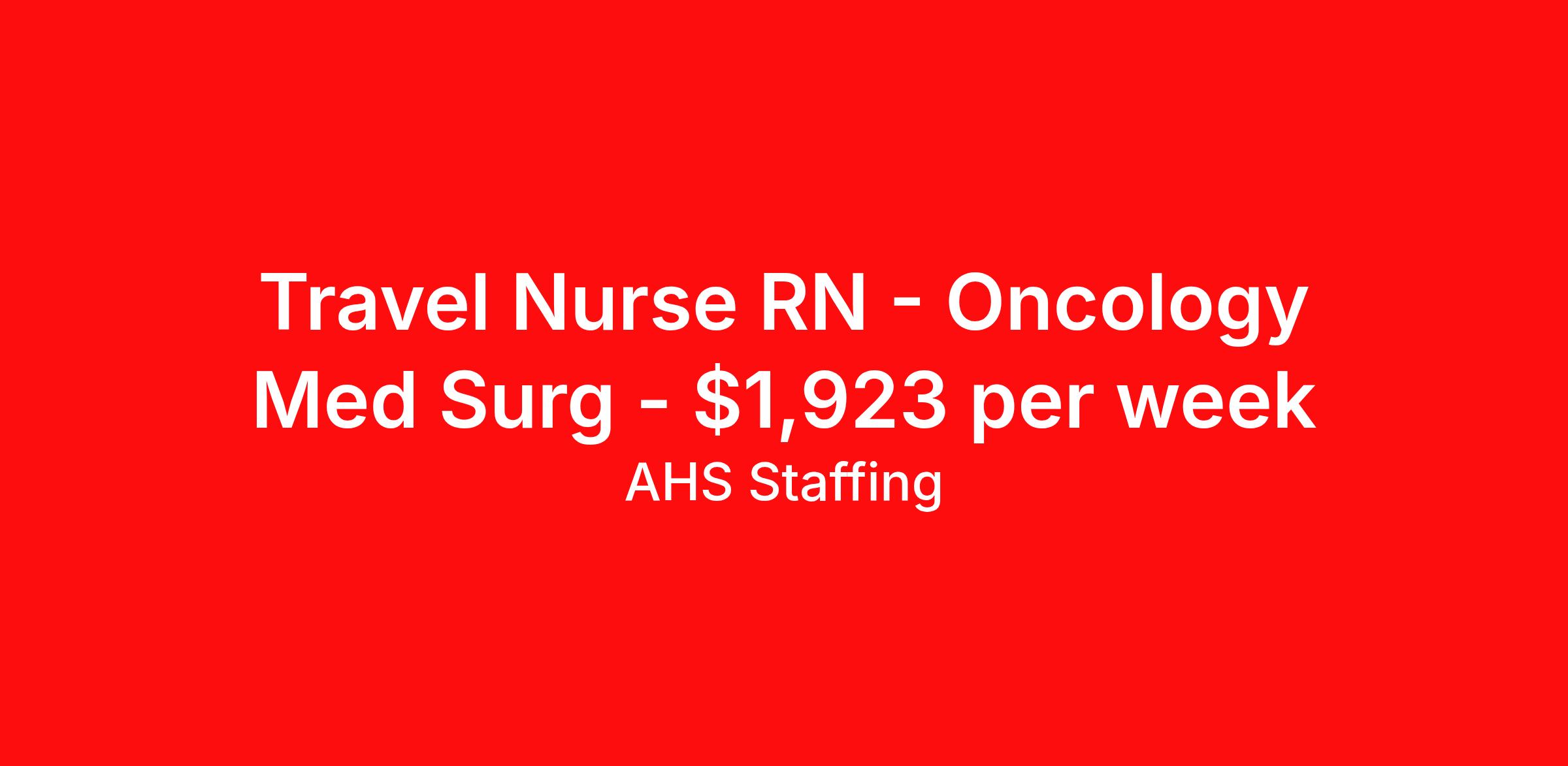 Travel Nurse RN - Oncology Med Surg - $1,923 per week