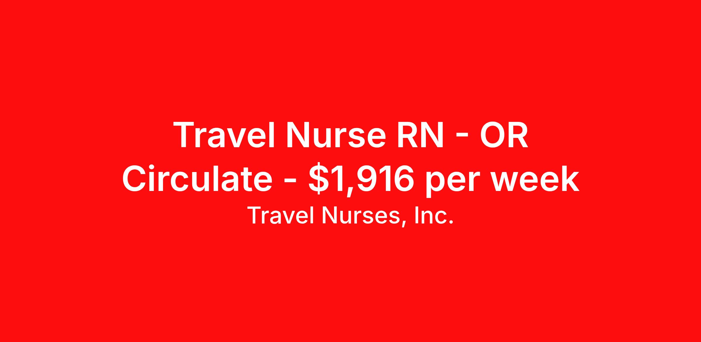 Travel Nurses, Inc. is seeking a travel nurse RN OR Circulate for a travel nursing job in Denver, Colorado. Job Description & Requirements Specialty: OR Circulate Discipline: RN Start Date: ASAP Duration: 13 weeks 36 hours per week Shift: 12 hours Employment Type: Travel Travel Nurses, Inc. Job ID 296796. Pay package is based on 12 hour shifts and 36 hours per week (subject to confirmation) with tax-free stipend amount to be determined. Posted job title: TRAVEL - RN - OR (701) - PSLMC - 7A - 7P About Travel Nurses, Inc. Travel Nurses, Inc. is a leading healthcare staffing agency that provides healthcare professionals with opportunities to work across the country. Founded by nurses in 1988, TNI has more than 30 years of experience in the industry. The agency initially focused on staffing operating room settings in the MidSouth. However, this quickly evolved to encompass all nursing specialties and allied health fields nationwide. At the heart of our mission is a profound respect for nurses, whom we consider the cornerstone of healthcare. This acknowledgment extends beyond the nursing profession alone. Travel Nurses, Inc. now proudly embraces a wide array of healthcare professionals, recognizing their crucial roles in our collective mission. Travel Nurses, Inc. is dedicated to providing comprehensive support and opportunities that will help facilitate complete career mobility in the healthcare field. Our commitment to transparency ensures that all professionals, not just nurses, can confidently accept any assignment without financial uncertainties. We prioritize our professionals’ well-being with comprehensive benefits packages, including day-one healthcare coverage, competitive salaries, bonuses and incentives. This underscores our unwavering commitment to offering the best possible rewards and support for all the professionals we serve. Benefits Weekly pay Continuing Education 401k retirement plan Wellness and fitness programs Mileage reimbursement Referral bonus Employee assistance programs Medical benefits Dental benefits Vision benefits Benefits start day 1 License and certification reimbursement Life insurance Retention bonus