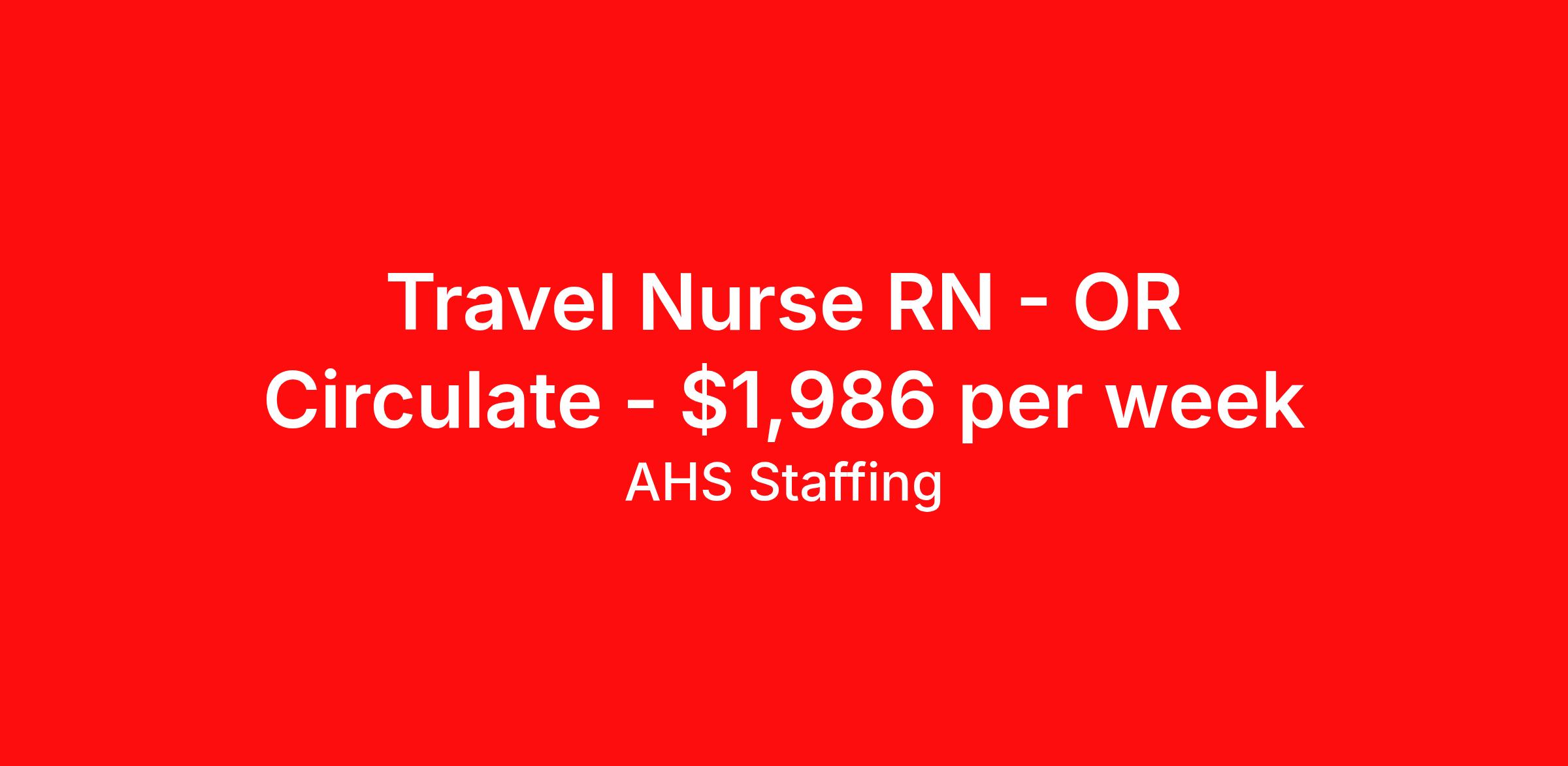 Travel Nurse RN - OR Circulate - $1,986 per week
