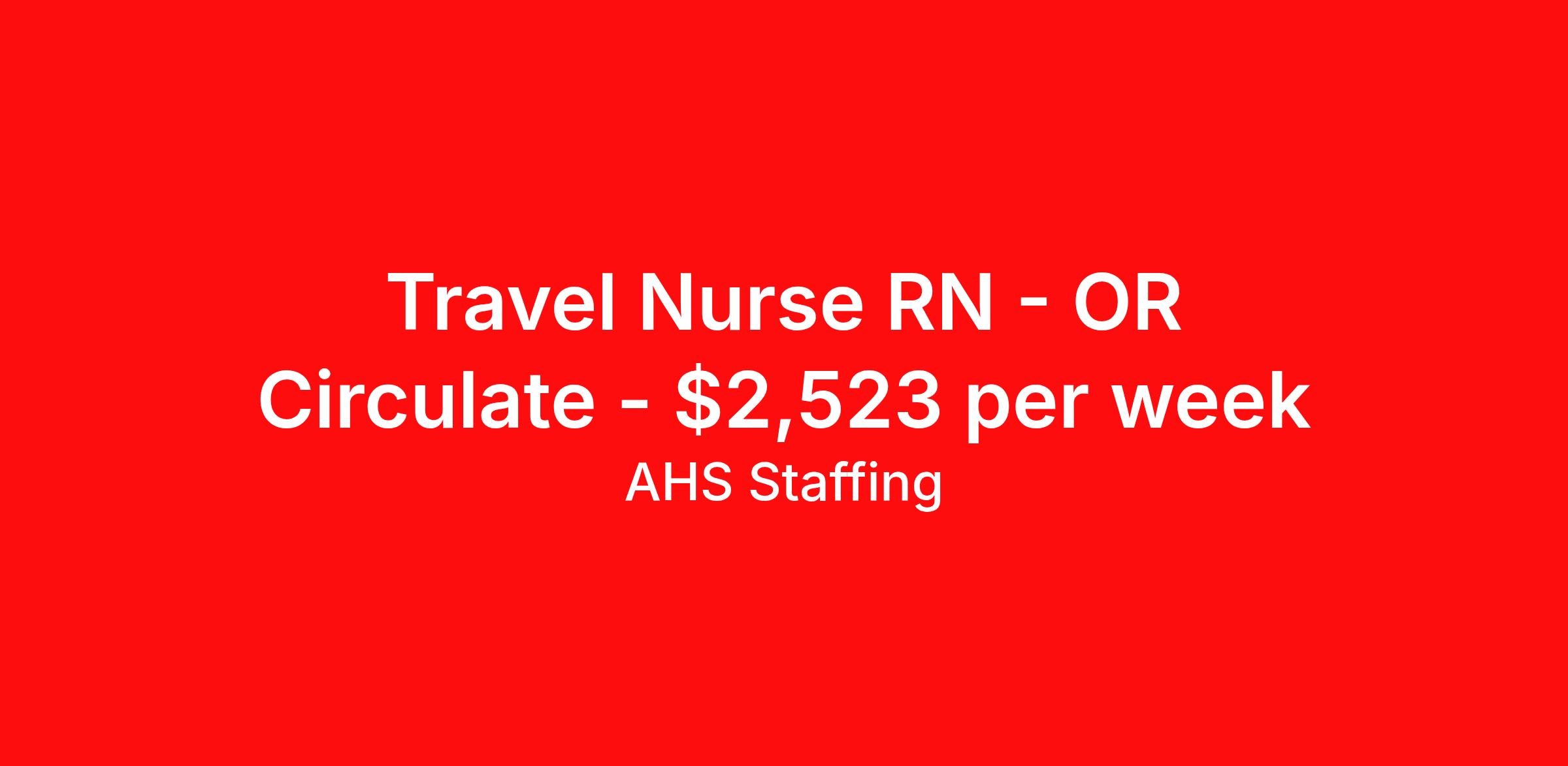 Travel Nurse RN - OR Circulate - $2,523 per week