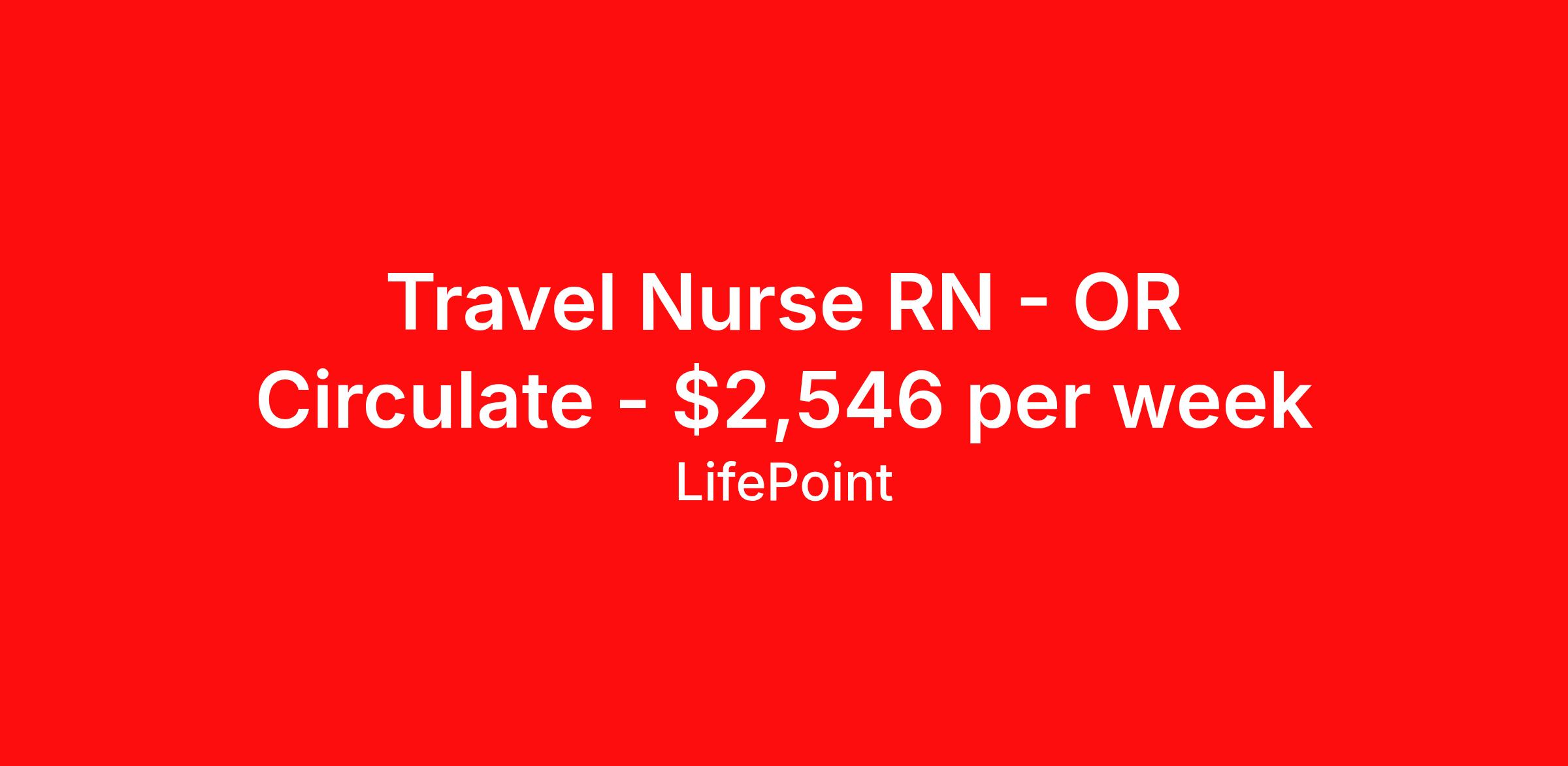 Travel Nurse RN - OR Circulate - $2,546 per week