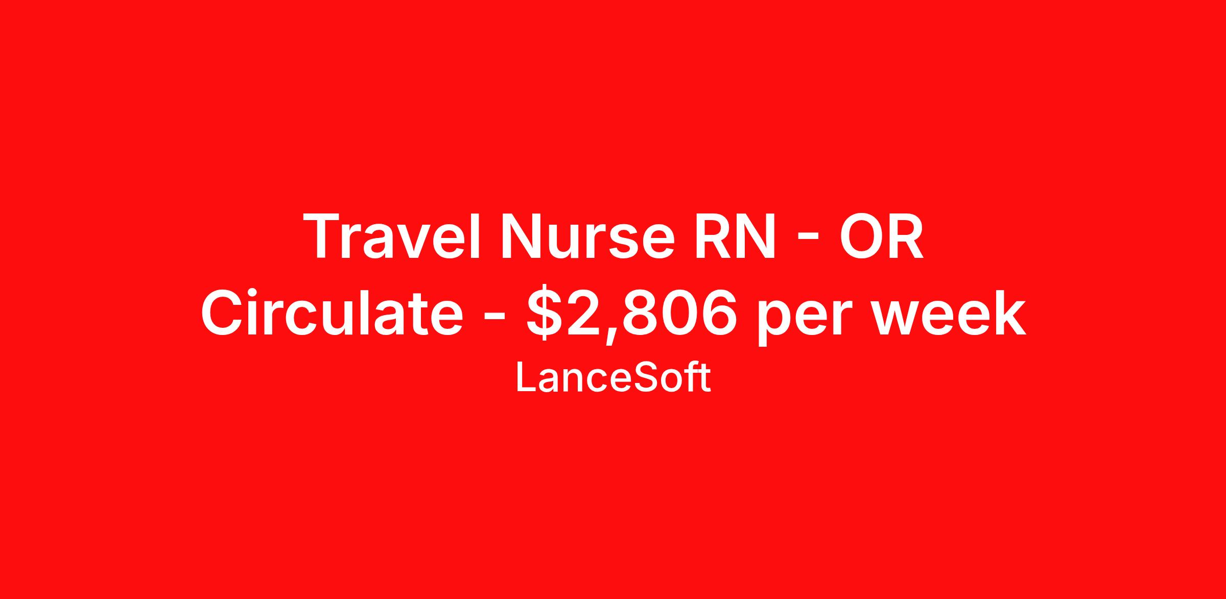 Travel Nurse RN - OR Circulate - $2,806 per week