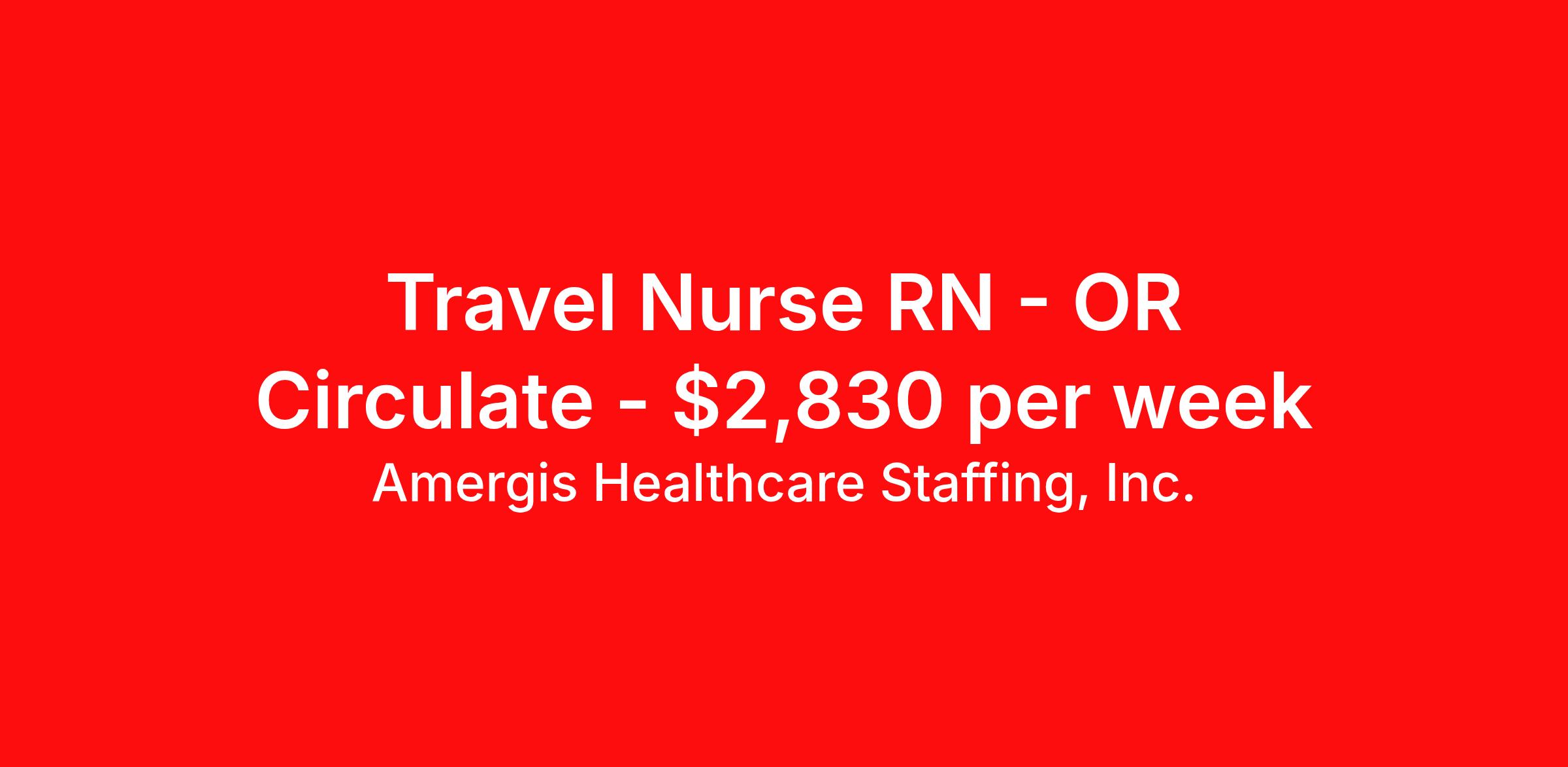 Amergis Healthcare Staffing, Inc. is seeking a travel nurse RN OR Circulate for a travel nursing job in Hermiston, Oregon. Job Description & Requirements Specialty: OR Circulate Discipline: RN Duration: 13 weeks 36 hours per week Shift: 12 hours Employment Type: Travel Amergis Healthcare Staffing is seeking an Operating Room Nurse responsible for scrubbing and/or circulating duties for operative procedures; department admissions to the operative suite. He/She is responsible to the Nurse Manager and is directly supervised by the RN in the operating rooms to which he/she is assigned. Minimum Requirements: Current licensure as a Registered Nurse in the state in which he/she practices Documentation and confirmation of one year of operating room clinical experience in an acute care hospital within the last three years preferred Current BLS card. Current Health Certificate (if applicable) Current PPD or Chest X-Ray Benefits At Amergis, we firmly believe that our employees are the heartbeat of our organization and we are happy to offer the following benefits: Competitive pay & weekly paychecks Health, dental, vision, and life insurance 401(k) savings plan Awards and recognition programs *Benefit eligibility is dependent on employment status. About Amergis Amergis, formerly known as Maxim Healthcare Staffing, has served our clients and communities by connecting people to the work that matters since 1988. We provide meaningful opportunities to our extensive network of healthcare and school-based professionals, ready to work in any hospital, government facility, or school. Through partnership and innovation, Amergis creates unmatched staffing experiences to deliver the best workforce solutions. Amergis is an equal opportunity/affirmative action employer. All qualified applicants will receive consideration for employment without regard to sex, gender identity, sexual orientation, race, color, religion, national origin, disability, protected Veteran status, age, or any other characteristic protected by law. Amergis Job ID 1109949. Pay package is based on 12 hour shifts and 36 hours per week (subject to confirmation) with tax-free stipend amount to be determined. Posted job title: RN OR Circulator - Oregon Travel contract - 13 weeks About Amergis Healthcare Staffing, Inc. Amergis, formerly known as Maxim Healthcare Staffing, has served our clients and communities by connecting people to the work that matters since 1988. We provide meaningful opportunities to our extensive network of healthcare and school-based professionals, ready to work in any hospital, government facility, or school. Through partnership and innovation, Amergis creates unmatched staffing experiences to deliver the best workforce solutions.