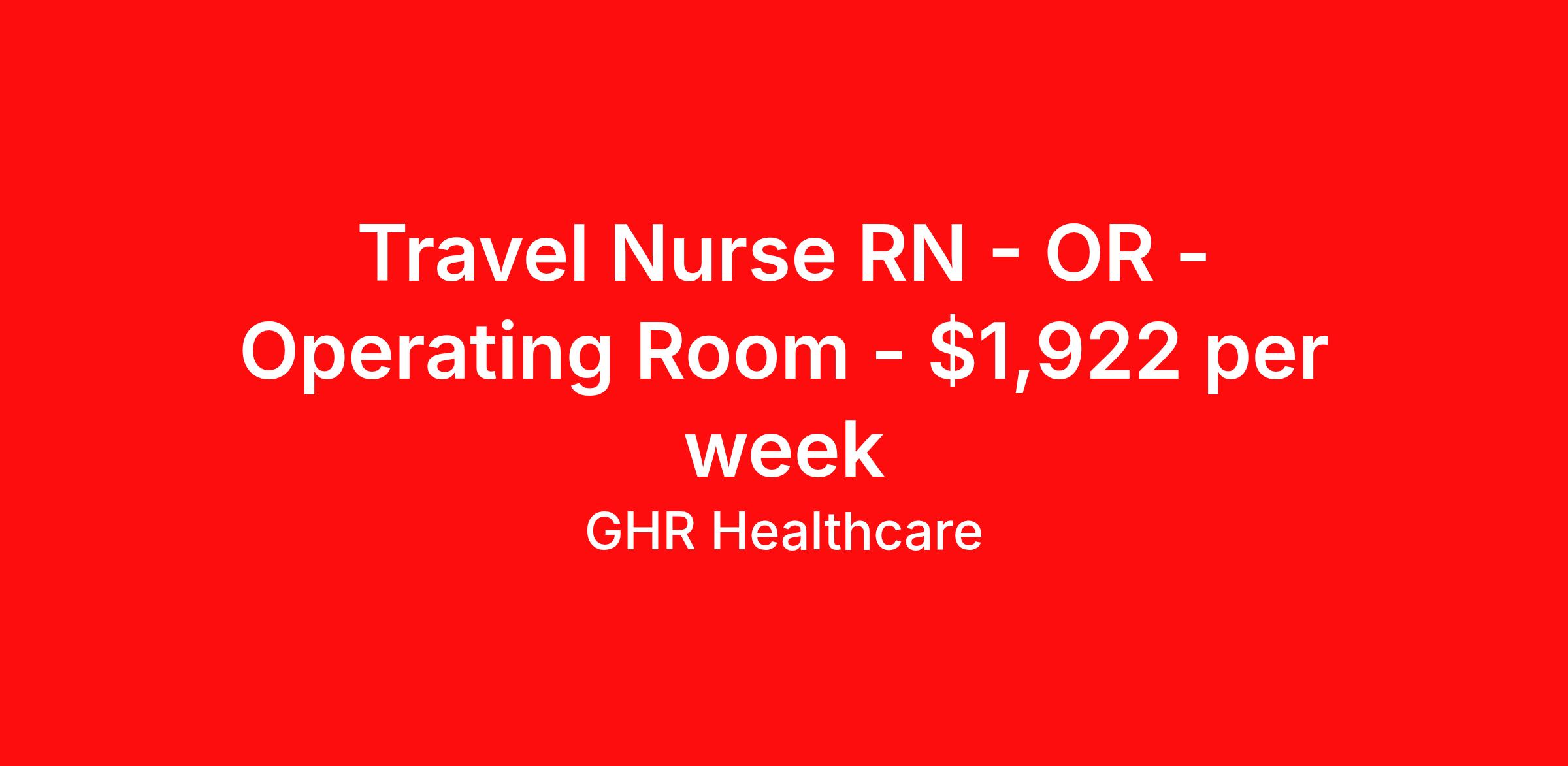 Travel Nurse RN - OR - Operating Room - $1,922 per week