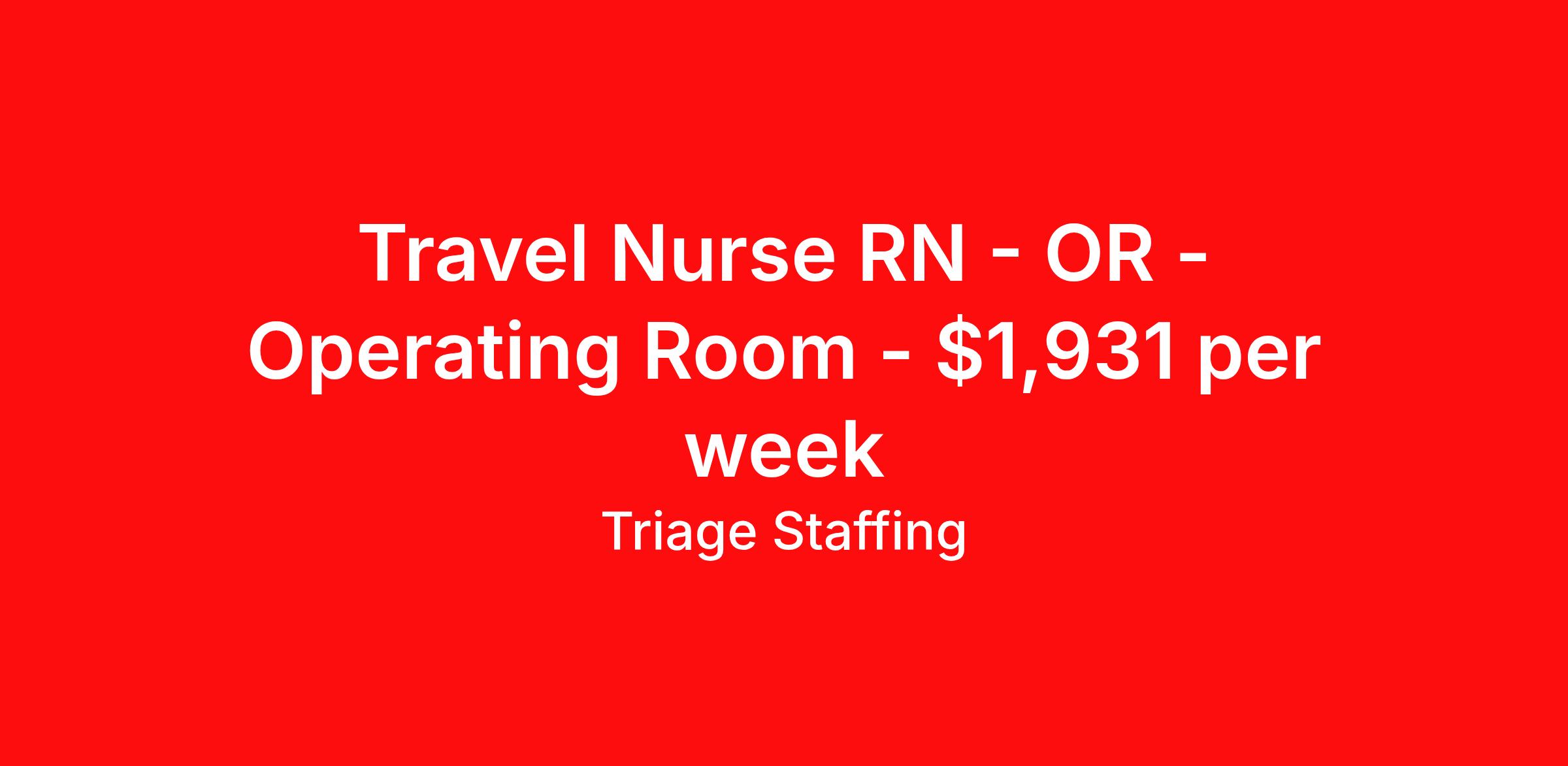 Triage Staffing is seeking a travel nurse RN OR - Operating Room for a travel nursing job in Lawrenceville, Georgia. Job Description & Requirements Specialty: OR - Operating Room Discipline: RN Start Date: 04/13/2026 Duration: 13 weeks 36 hours per week Shift: 12 hours, days Employment Type: Travel Travel Nursing: OR Lawrenceville Location: Lawrenceville Start Date: 4/13/2026 Shift Details: 12H Days 36 hours per week Length: 13 WEEKS Apply for specific facility details.OR RN Triage Staffing Job ID UW6APUWV. Posted job title: Registered Nurse Operating Room About Triage Staffing At Triage, we prefer to be real . Real about expectations—both ours and yours. Real about how a decision you make today could affect your tomorrows. Real about how compensation actually works. Real about how great—or grating—your next supervisor may be. Being real allows everyone at Triage to be ready . Ready to serve you with real honesty. So if that gig near the ocean is really no day at the beach, or that third shift comes with a second-class rate, we tell you. So you can be ready, too. We staff all five major divisions of acute care—nursing, lab, radiology, cardiopulmonary and rehab therapy, offering: - Competitive, custom pay packages - One point of contact for both travelers and facilities (per division) - A reliable recruiter who's got your back throughout your entire assignment - In-house compliance and accounting specialists - A clinical liaison team available 24/7 to offer medical and professional support and career development - A mentoring program that is run and managed by actual clinicians—yeah, you read that right - And more (because of course there’s more) Are we the biggest? No. Are we the best? That’s rather subjective, but we’re trying to be. Will we work like hell to get you as close to your idea of heaven as possible? Yes. Yes, we will. Benefits: Day One comprehensive, nationwide insurance plans for health, vision and dental and life—including a HSA option Day One 401(k) program with employer-matching contributions once eligible Facility cancelling protection—your time is money on and off-the-clock Guaranteed hours Weekly paychecks via direct deposit Earned vacation bonuses for time worked Paid holidays Employee assistance program (EAP)—your mental health is important, too Continuing education, certification and licensing reimbursement Workers comp—because accidents happen Top-rated professional liability insurance Company provided housing options Referral bonus—$750 in your pocket after they’ve completed a 13-week assignment