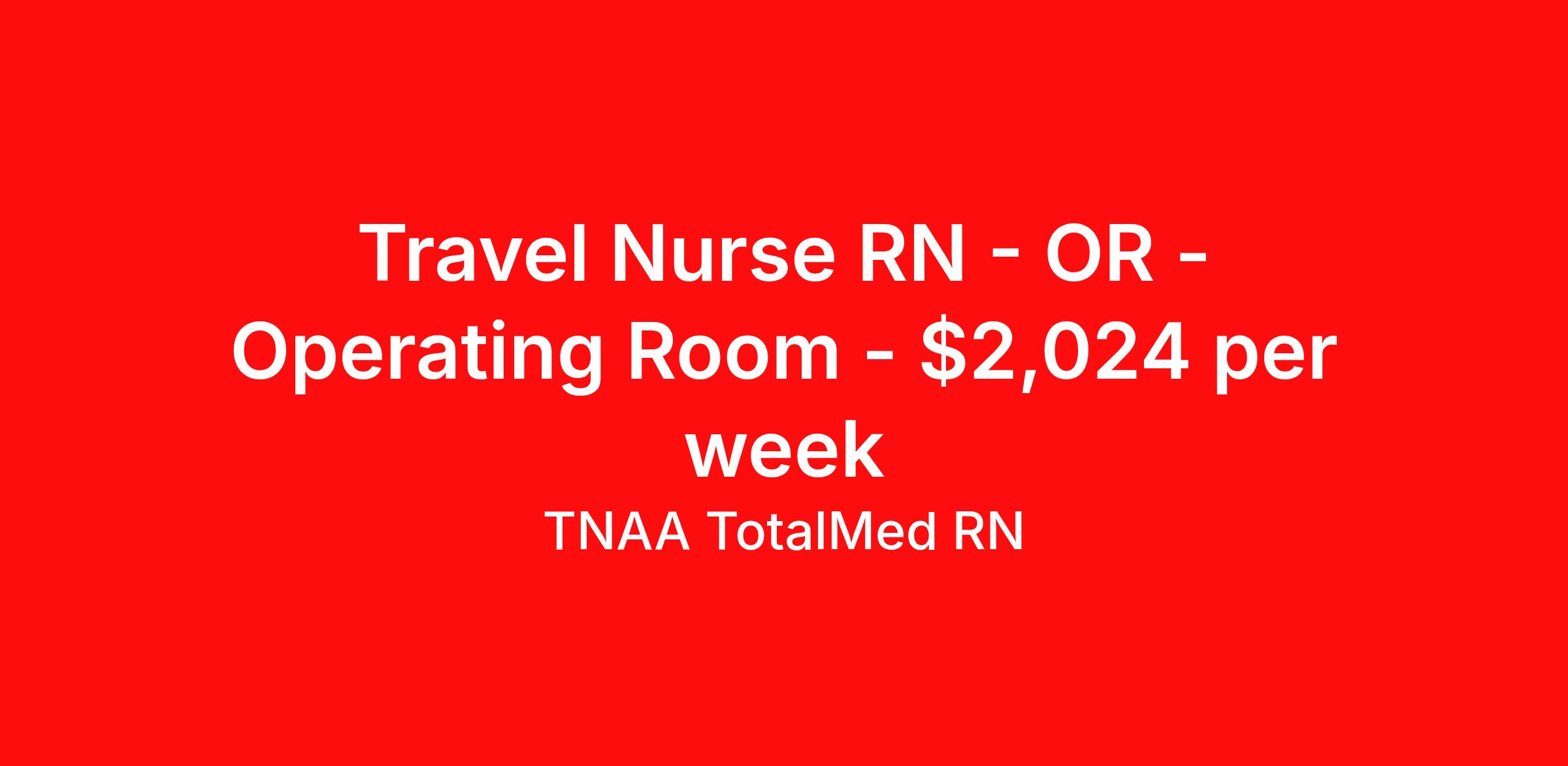 TNAA TotalMed RN is seeking a travel nurse RN OR - Operating Room for a travel nursing job in Montgomery, Alabama. Job Description & Requirements Specialty: OR - Operating Room Discipline: RN Start Date: 04/13/2026 Duration: 13 weeks 36 hours per week Shift: 12 hours, nights Employment Type: Travel We're looking for Operating Room RNs for an immediate travel nurse opening in Montgomery, AL. The right RN should have 1-2 years recent acute care experience as a circulating nurse, and/or scrub nurse, and potentially RN first assistant. Read below for more requirements. As an OR Travel Nurse, you will assist physicians and medical staff in caring for surgical patients, as well as providing pre- and post-surgery care and education to the patient. Circulating OR Nurses work within the operating suite but outside of the sterile field; Scrub OR Nurses handle and prepare operating instruments and equipment within the sterile field. Surgery responsibilities may include preparing instruments for specific surgical procedures, monitoring and observing the patient during surgery, and responding to potential complications alongside the physician. As an OR Travel Nurse, you should be prepared to perform the following tasks: Provide basic bedside care. Prepare, administer and record prescribed medication, reporting any adverse reactions to treatment. Serve as the communication liaison between patients' family members and members of the operating team. Ensure that the correct procedure(s) is being performed on the correct patient. Initiate patient education plan as prescribed by physician; teach patients and families how to manage medication and home care needs. Additional duties for Circulating OR Nurses may include: Responding to comfort and safety needs of patient. Accurate care and handling of specimens. Monitoring equipment used during surgery. Inventory of surgical items pre- and post-procedure. Additional duties for Scrub OR Nurses may include: Selection and handling of surgical instruments and supplies during procedures. Inventory of surgical items pre- and post-procedure. Additional duties for RN First Assistant may include: Assist physicians by delivering direct surgical care. Help control bleeding. Suture patients following surgery. OR Travel Nurses should be able to stand and walk for long periods of time, as well as bend, lean and stoop without difficulty. RNs should be able to easily lift 20 pounds. Moving or lifting of patients may require lifting of up to 50 pounds at times. RNs may face hazards from exposure to certain chemicals or infectious diseases in the operating room environment. Requirements*: ACLS, BLS, 2 Years * Additional certifications may be required before beginning an assignment. TotalMed Travel Job ID 1392665. Pay package is based on 12 hour shifts and 36 hours per week (subject to confirmation) with tax-free stipend amount to be determined. Posted job title: Operating Room - OR RN - Travel Nurse About TNAA TotalMed RN TotalMed is a Top Ten, travel nursing and healthcare staffing agency with the mission of igniting purpose in healthcare. The organization staffs nurses, therapists, pharmacists, and other clinicians of all specialties in all 50 states. They offer local and travel jobs and match caregivers with the right organization to assist both facilities and patients. As an organization, they focus on putting highly-skilled staff into facilities to ensure adequate staffing for a better patient experience. TotalMed specializes in recruiting and placing healthcare professionals in travel, PRN, and permanent positions across the country in Nursing and Allied Health. Throughout 2020, the organization filled roles at even the most short-staffed facilities during the most challenging time in healthcare. By matching the right travel healthcare professional with the right organization, TotalMed continues to offer a lifeline to facilities and their patients. Benefits Weekly pay Guaranteed Hours Continuing Education 401k retirement plan Sick pay Wellness and fitness programs Referral bonus Employee assistance programs Medical benefits Dental benefits Vision benefits Benefits start day 1