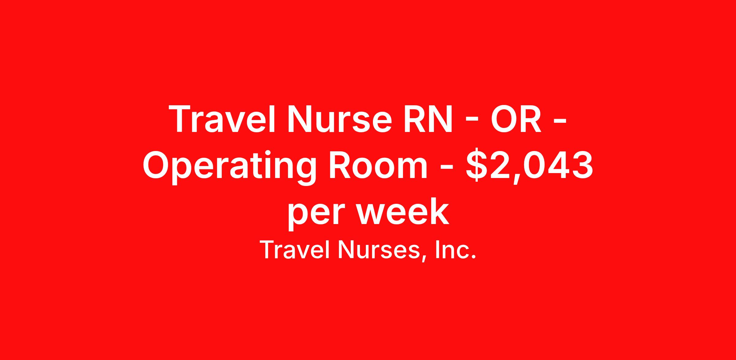 Travel Nurses, Inc. is seeking a travel nurse RN OR - Operating Room for a travel nursing job in Seattle, Washington. Job Description & Requirements Specialty: OR - Operating Room Discipline: RN Start Date: 04/06/2026 Duration: 13 weeks 40 hours per week Shift: 8 hours Employment Type: Travel Travel Nurses, Inc. Job ID 306864. Pay package is based on 8 hour shifts and 40 hours per week (subject to confirmation) with tax-free stipend amount to be determined. Posted job title: PreOp Registered Nurse About Travel Nurses, Inc. Travel Nurses, Inc. is a leading healthcare staffing agency that provides healthcare professionals with opportunities to work across the country. Founded by nurses in 1988, TNI has more than 30 years of experience in the industry. The agency initially focused on staffing operating room settings in the MidSouth. However, this quickly evolved to encompass all nursing specialties and allied health fields nationwide. At the heart of our mission is a profound respect for nurses, whom we consider the cornerstone of healthcare. This acknowledgment extends beyond the nursing profession alone. Travel Nurses, Inc. now proudly embraces a wide array of healthcare professionals, recognizing their crucial roles in our collective mission. Travel Nurses, Inc. is dedicated to providing comprehensive support and opportunities that will help facilitate complete career mobility in the healthcare field. Our commitment to transparency ensures that all professionals, not just nurses, can confidently accept any assignment without financial uncertainties. We prioritize our professionals’ well-being with comprehensive benefits packages, including day-one healthcare coverage, competitive salaries, bonuses and incentives. This underscores our unwavering commitment to offering the best possible rewards and support for all the professionals we serve. Benefits Weekly pay Continuing Education 401k retirement plan Wellness and fitness programs Mileage reimbursement Referral bonus Employee assistance programs Medical benefits Dental benefits Vision benefits Benefits start day 1 License and certification reimbursement Life insurance Retention bonus