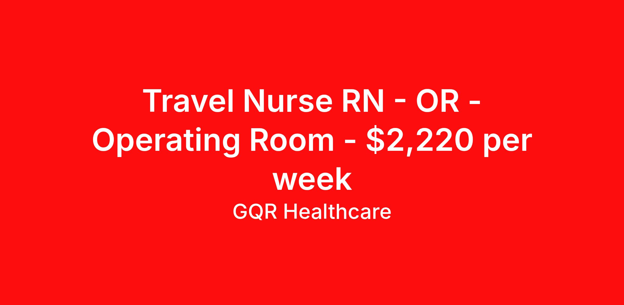 Travel Nurse RN - OR - Operating Room - $2,220 per week