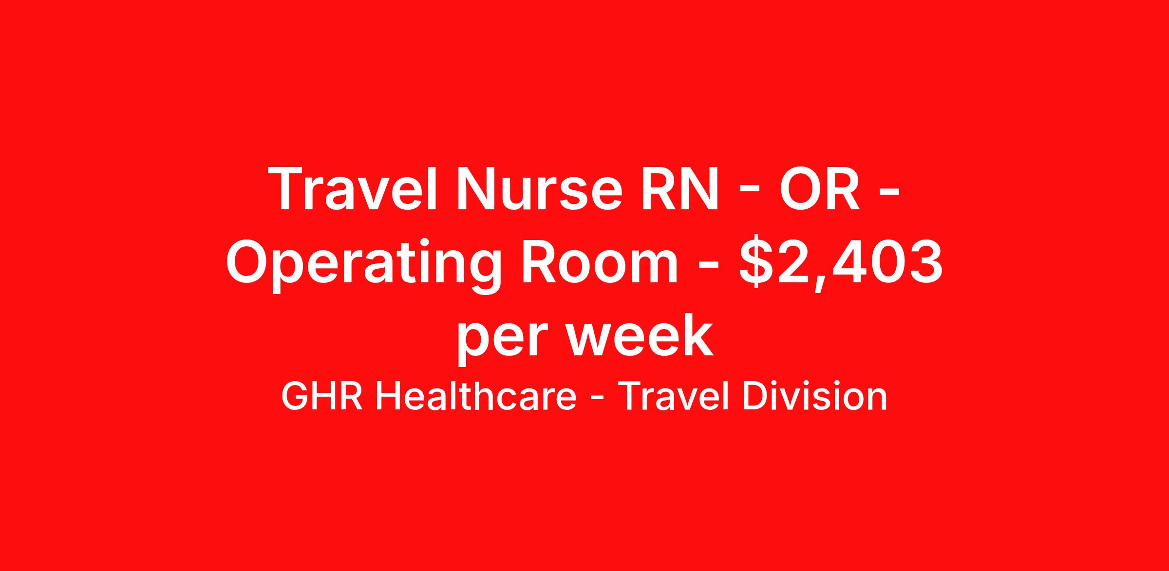 GHR Healthcare - Travel Division is seeking a travel nurse RN OR - Operating Room for a travel nursing job in Sellersville, Pennsylvania. Job Description & Requirements Specialty: OR - Operating Room Discipline: RN Start Date: 04/13/2026 Duration: 13 weeks 36 hours per week Shift: 12 hours, days, nights Employment Type: Travel Grand View OR - 3 needs *MUST SCRUB 1 full weekend of on-call 7p Friday-730a Monday per 13 weeks 2 week nights of call coverage per 4 weeks 7p-730a 13 weeks Aim Start: 4/13 About GHR Healthcare - Travel Division For over 30 years, GHR Healthcare has been the bridge between healthcare professionals and the facilities that need them nationwide. We're committed to uncovering your ideal fit, supported by GHR's dedication to competitive compensation, transparent communication, and a devoted team that genuinely cares about your career journey. You can trust us to stand by your side as your advocate, confidante, and partner in advancing your career. At GHR, care and consideration are at the heart of everything we do. Visit ghrhealthcare.com to learn more.