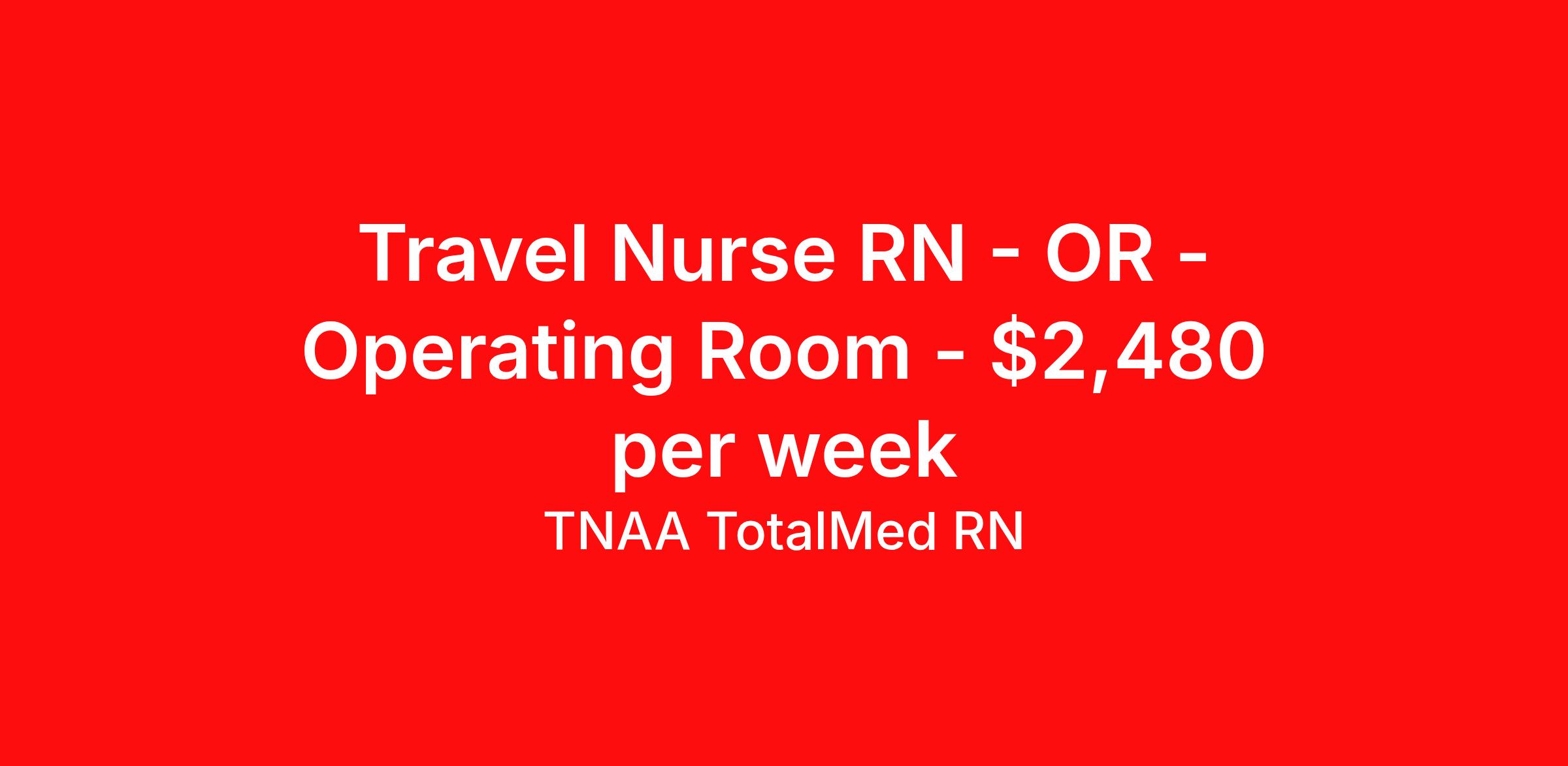 TNAA TotalMed RN is seeking a travel nurse RN OR - Operating Room for a travel nursing job in Milwaukee, Wisconsin. Job Description & Requirements Specialty: OR - Operating Room Discipline: RN Start Date: 04/27/2026 Duration: 13 weeks 36 hours per week Shift: 12 hours, days Employment Type: Travel We're looking for Operating Room RNs for an immediate travel nurse opening in Milwaukee, WI. The right RN should have 1-2 years recent acute care experience as a circulating nurse, and/or scrub nurse, and potentially RN first assistant. Read below for more requirements. As an OR Travel Nurse, you will assist physicians and medical staff in caring for surgical patients, as well as providing pre- and post-surgery care and education to the patient. Circulating OR Nurses work within the operating suite but outside of the sterile field; Scrub OR Nurses handle and prepare operating instruments and equipment within the sterile field. Surgery responsibilities may include preparing instruments for specific surgical procedures, monitoring and observing the patient during surgery, and responding to potential complications alongside the physician. As an OR Travel Nurse, you should be prepared to perform the following tasks: Provide basic bedside care. Prepare, administer and record prescribed medication, reporting any adverse reactions to treatment. Serve as the communication liaison between patients' family members and members of the operating team. Ensure that the correct procedure(s) is being performed on the correct patient. Initiate patient education plan as prescribed by physician; teach patients and families how to manage medication and home care needs. Additional duties for Circulating OR Nurses may include: Responding to comfort and safety needs of patient. Accurate care and handling of specimens. Monitoring equipment used during surgery. Inventory of surgical items pre- and post-procedure. Additional duties for Scrub OR Nurses may include: Selection and handling of surgical instruments and supplies during procedures. Inventory of surgical items pre- and post-procedure. Additional duties for RN First Assistant may include: Assist physicians by delivering direct surgical care. Help control bleeding. Suture patients following surgery. OR Travel Nurses should be able to stand and walk for long periods of time, as well as bend, lean and stoop without difficulty. RNs should be able to easily lift 20 pounds. Moving or lifting of patients may require lifting of up to 50 pounds at times. RNs may face hazards from exposure to certain chemicals or infectious diseases in the operating room environment. Requirements*: BLS, 3 Years * Additional certifications may be required before beginning an assignment. TotalMed Travel Job ID 1393266. Pay package is based on 12 hour shifts and 36 hours per week (subject to confirmation) with tax-free stipend amount to be determined. Posted job title: Operating Room - OR RN - Travel Nurse About TNAA TotalMed RN TotalMed is a Top Ten, travel nursing and healthcare staffing agency with the mission of igniting purpose in healthcare. The organization staffs nurses, therapists, pharmacists, and other clinicians of all specialties in all 50 states. They offer local and travel jobs and match caregivers with the right organization to assist both facilities and patients. As an organization, they focus on putting highly-skilled staff into facilities to ensure adequate staffing for a better patient experience. TotalMed specializes in recruiting and placing healthcare professionals in travel, PRN, and permanent positions across the country in Nursing and Allied Health. Throughout 2020, the organization filled roles at even the most short-staffed facilities during the most challenging time in healthcare. By matching the right travel healthcare professional with the right organization, TotalMed continues to offer a lifeline to facilities and their patients. Benefits Weekly pay Guaranteed Hours Continuing Education 401k retirement plan Sick pay Wellness and fitness programs Referral bonus Employee assistance programs Medical benefits Dental benefits Vision benefits Benefits start day 1