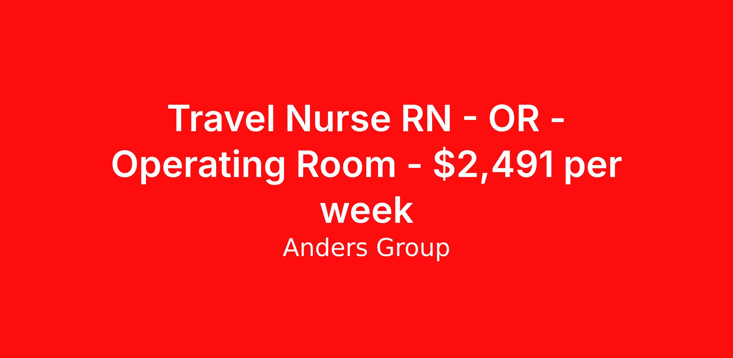 Travel Nurse RN - OR - Operating Room - $2,491 per week