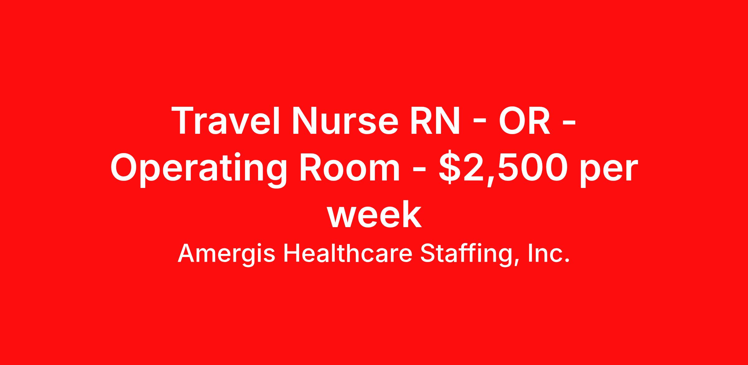 Amergis Healthcare Staffing, Inc. is seeking a travel nurse RN OR - Operating Room for a travel nursing job in Atlanta, Georgia. Job Description & Requirements Specialty: OR - Operating Room Discipline: RN Duration: 13 weeks 40 hours per week Shift: 8 hours Employment Type: Travel TRAVELERS ONLY (NO LOCAL) Amergis Healthcare Staffing is seeking an Operating Room Nurse responsible for scrubbing and/or circulating duties for operative procedures; department admissions to the operative suite. He/She is responsible to the Nurse Manager and is directly supervised by the RN in the operating rooms to which he/she is assigned. Minimum Requirements: Current licensure as a Registered Nurse in the state in which he/she practices Documentation and confirmation of one year of operating room clinical experience in an acute care hospital within the last three years preferred Current BLS card. Current Health Certificate (if applicable) Current PPD or Chest X-Ray Benefits At Amergis, we firmly believe that our employees are the heartbeat of our organization and we are happy to offer the following benefits: Competitive pay & weekly paychecks Health, dental, vision, and life insurance 401(k) savings plan Awards and recognition programs *Benefit eligibility is dependent on employment status. About Amergis Amergis, formerly known as Maxim Healthcare Staffing, has served our clients and communities by connecting people to the work that matters since 1988. We provide meaningful opportunities to our extensive network of healthcare and school-based professionals, ready to work in any hospital, government facility, or school. Through partnership and innovation, Amergis creates unmatched staffing experiences to deliver the best workforce solutions. Amergis is an equal opportunity/affirmative action employer. All qualified applicants will receive consideration for employment without regard to sex, gender identity, sexual orientation, race, color, religion, national origin, disability, protected Veteran status, age, or any other characteristic protected by law. Amergis Job ID 1107371. Pay package is based on 8 hour shifts and 40 hours per week (subject to confirmation) with tax-free stipend amount to be determined. Posted job title: RN | OR | Atlanta, GA About Amergis Healthcare Staffing, Inc. Amergis, formerly known as Maxim Healthcare Staffing, has served our clients and communities by connecting people to the work that matters since 1988. We provide meaningful opportunities to our extensive network of healthcare and school-based professionals, ready to work in any hospital, government facility, or school. Through partnership and innovation, Amergis creates unmatched staffing experiences to deliver the best workforce solutions.