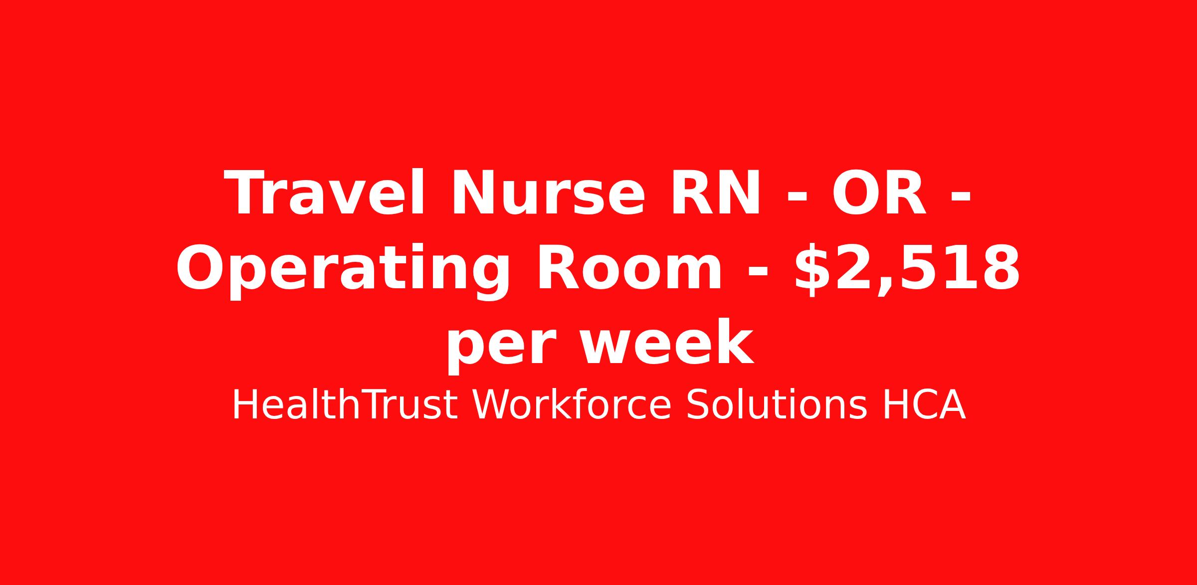 HealthTrust Workforce Solutions HCA is seeking a travel nurse RN OR - Operating Room for a travel nursing job in Reston, Virginia. Job Description & Requirements Specialty: OR - Operating Room Discipline: RN Start Date: 04/06/2026 Duration: 13 weeks 36 hours per week Shift: 12 hours, days Employment Type: Travel Unit Information: Operating Room Location: Reston Hospital Center Address: 1850 Town Center Parkway Floor: 1st floor Building: Pavilion I General Information Tell us about the unit(s): · Number of Beds – 18 · Number of Staff – · Type of staff: Mix of RN, Surgical Tech o Day Shift – Scrub and Circulator for 18 rooms; Charge RN; Service Line Experts/Support; OR Support Technicians o Night Shift – Scrub and Circulator – trauma team; additional on-call teams · Patient Ratios – · Type of equipment – · EMR – Meditech Typical hiring profile Skill Set Most recruited for: Level 2 trauma experience; Experience across various surgical specialties including orthopedics (general, total joint, and spine), neuro, general/GYN/urology (including DaVinci), vascular, and thoracic. Must have : candidates without these skills will not be considered for the role. · Level 2 or greater trauma experience · Preferred or nice to have : candidates with these skills will be considered first. · Expert spine and ortho skills · List typical procedures performed on unit(s): · Spinal fusion, total joint replacements, ortho trauma · DaVinci Robot procedures (prostatectomy, colectomy, gastric bypass, etc.) Best personality Fit: · Team player REQUIRED CERTIFICATIONS: · BLS; Certifications specific to role and aligned with state and federal regulations (e.g. CST, license, etc.) Floating Area(s): · OB OR Dress Code : · Scrub Color/Attire – provided by facility Jayden Williamson | Healthcare Recruiter | HealthTrust Workforce Solutions | e: About HealthTrust Workforce Solutions HCA At HealthTrust Workforce Solutions, healthcare is not just about the four walls of a facility but about the people who provide and receive care. Our focus is on empowering healthcare professionals to deliver exceptional patient experiences by providing them with the necessary skills, tools, and support. We partner with healthcare facilities nationwide to ensure that the right professionals are in the right roles. We prioritize our clinicians by giving them a voice and access to opportunities to fulfill their mission of improving lives by providing quality patient care. We are committed to our core values of Trust, Innovation, Adaptability, Courage, and Accountability. We are dedicated to positively impacting the healthcare industry by providing first-priority access to more than 200,000 jobs nationwide to our healthcare professionals. Join us and be part of the HealthTrust family, where you can make a difference every day. We embrace our changing environment, and we maintain a culture that has a rich tradition of transforming itself to meet the challenges of the future. MISSION STATEMENT While putting great people in the right roles is essential, our mission is far greater. We want our clinicians to be part of the HealthTrust family, where healthcare professionals have a voice and are empowered with the right tools and opportunities to fulfill their personal mission of improving lives. Plus, as a preferred partner to thousands of top-performing hospitals, we provide our healthcare professionals with first-priority access to more than 200,000 jobs nationwide. Benefits Dental benefits Vision benefits Referral bonus Continuing Education Life insurance