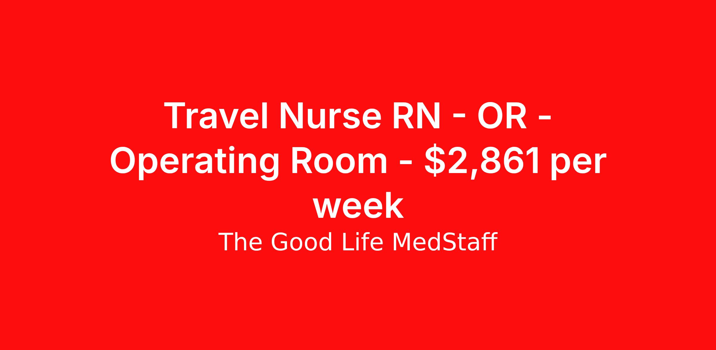 The Good Life MedStaff is seeking a travel nurse RN OR - Operating Room for a travel nursing job in Victorville, California. Job Description & Requirements Specialty: OR - Operating Room Discipline: RN Start Date: ASAP Duration: 13 weeks 40 hours per week Shift: 10 hours, days Employment Type: Travel Southern California Hospital outside of LA is in need of an OR RN for their OR working 10 hour days working 9a-7:30 pm 4 days per week. This 13 week travel contract will go quickly with limited call required (24 hours of on call per month) Call a Recruiter for more details! The Good Life MedStaff Job ID 36197342. Pay package is based on 10 hour shifts and 40.0 hours per week (subject to confirmation) with tax-free stipend amount to be determined. Posted job title: RN:OR,06:00:00-16:00:00 About The Good Life MedStaff We are a Travel Nursing Agency, connecting compassionate caregivers, who love adventure, with amazing opportunities. We want to bring you to The Good Life! Connecting, Caring, and Competing for the best opportunities to help you reach your goals! Benefits Medical benefits Dental benefits Vision benefits 401k retirement plan Referral bonus