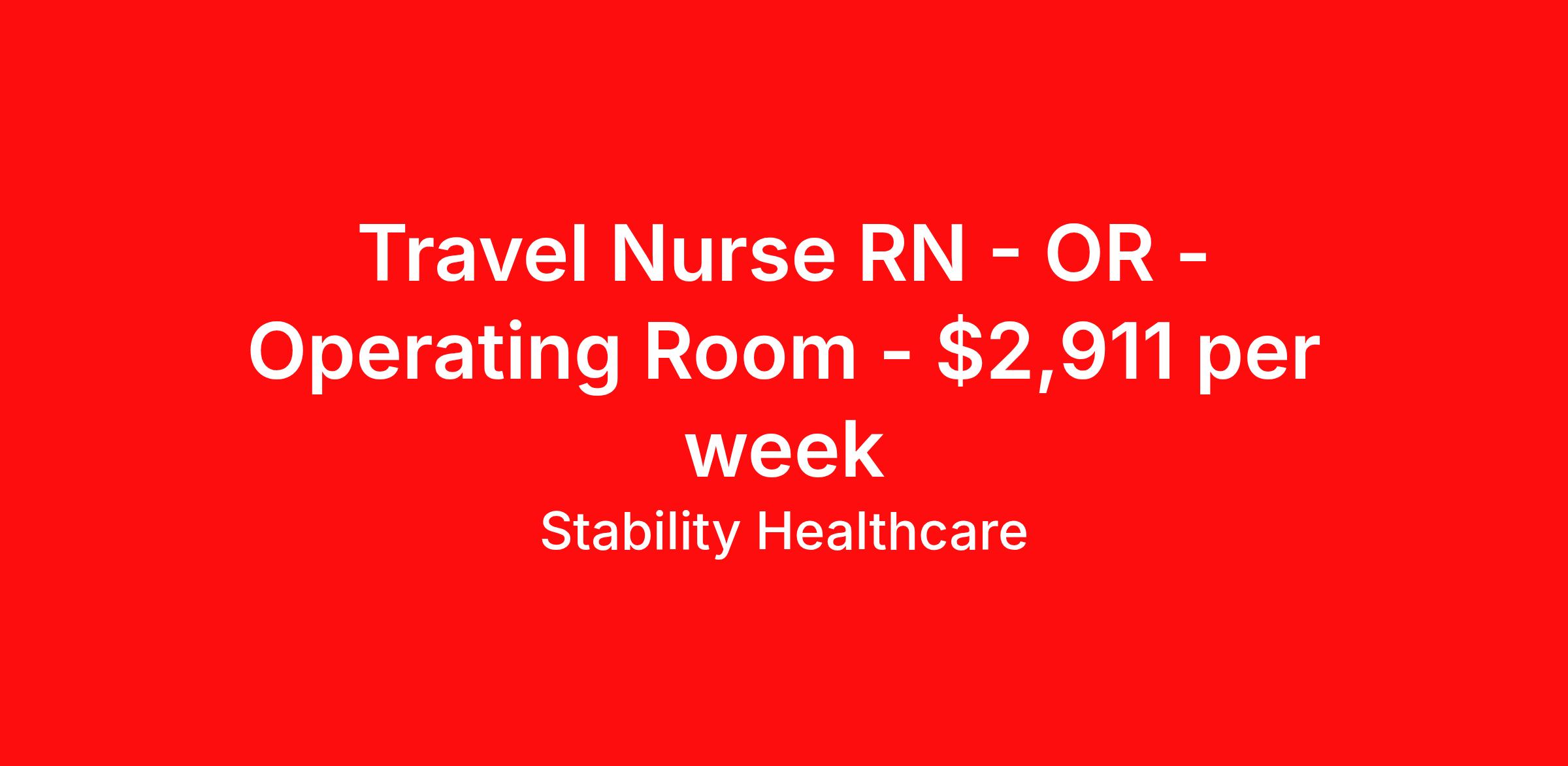 Stability Healthcare is seeking a travel nurse RN OR - Operating Room for a travel nursing job in Portland, Oregon. Job Description & Requirements Specialty: OR - Operating Room Discipline: RN Start Date: 04/27/2026 Duration: 13 weeks 40 hours per week Shift: 10 hours, nights Employment Type: Travel Stability Healthcare is looking for a OR RN contract position in Portland, OR. Also known as perioperative nurses, operating room (OR) nurses provide care for patients before, during, and after surgical procedures. Perioperative nurses work in every type of healthcare facility. *$600 travel bonus *Day 1 health insurance with United Healthcare *PTO plan start accruing on day 1, use during contract or cash out at the end! *Guaranteed stipend if facility calls you off *Extra hour bonus earn an additional hourly bonus for working over your weekly contracted hours Stability Job ID 828064. Pay package is based on 10 hour shifts and 40 hours per week (subject to confirmation) with tax-free stipend amount to be determined. Posted job title: OR About Stability Healthcare Stability Healthcare was founded in 2009, with the mission of becoming the best Travel Nursing Agency in California. We have been rated one of the top travel nursing agencies and offer our nurses the highest paying travel nursing jobs available. We have access to the best travel assignments from 1000’s of facilities. You can start the year off in sunny California, spend the Spring in the Colorado Rockies, enjoy the Summer in the Mid-West, experience the change of seasons in Boston and New York, and hit the beaches of Florida in the winter. Our Nurses work in the best hospitals and health systems in the country. Benefits Guaranteed Hours Benefits start day 1