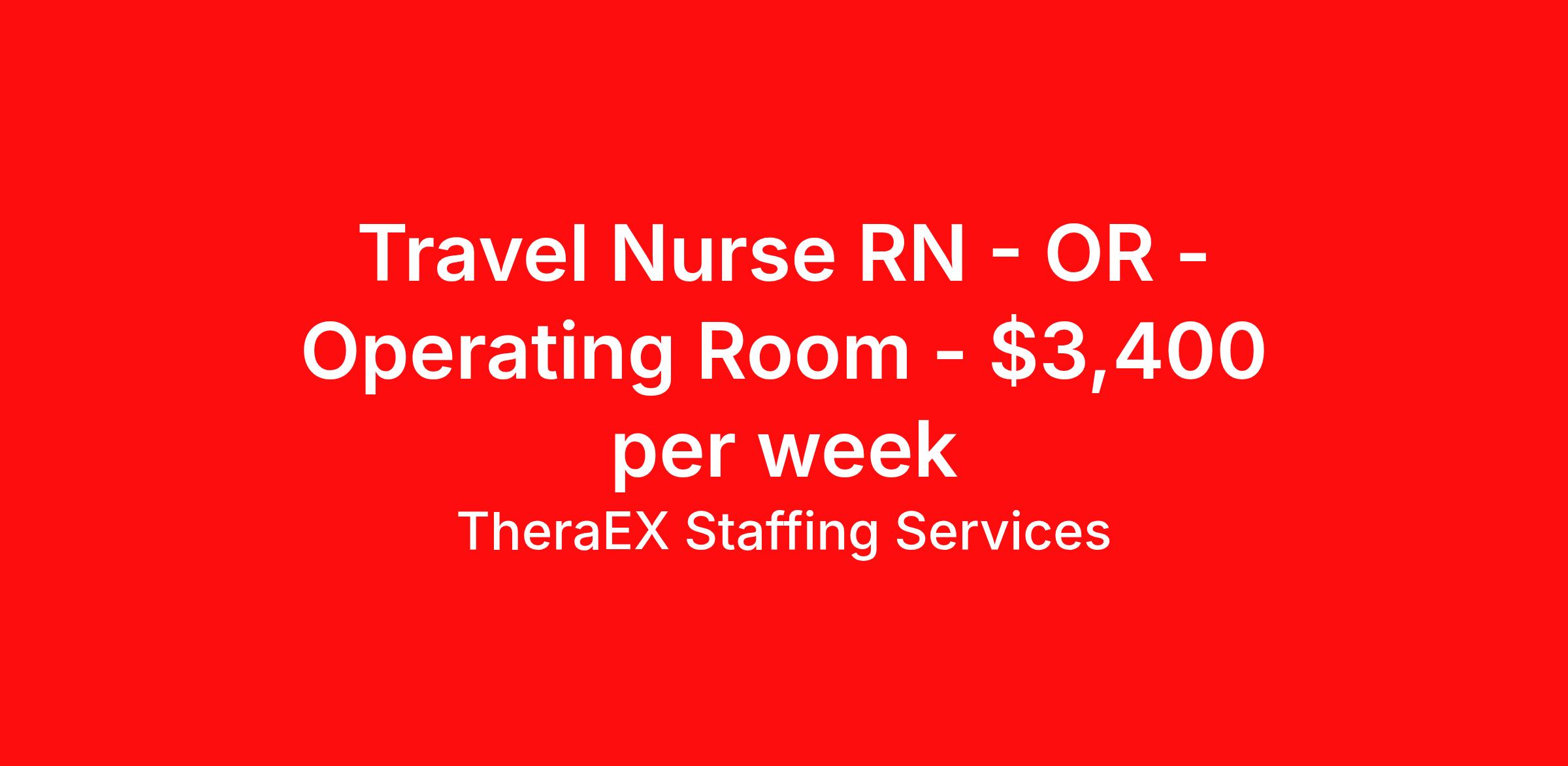 TheraEX Staffing Services is seeking a travel nurse RN OR - Operating Room for a travel nursing job in Quinter, Kansas. Job Description & Requirements Specialty: OR - Operating Room Discipline: RN Duration: 13 weeks 40 hours per week Shift: 8 hours, days Employment Type: Travel Hard Stop Requirements Active RN License – Kansas (or Compact License) Recent OR Circulator experience (must be hands-on) BLS Certification – Required Must be comfortable working in a Critical Access Hospital (smaller team, independent work) Ability to handle a variety of surgical cases (general OR cases) TheraEX Staffing Services Job ID 26-13657. Pay package is based on 8 hour shifts and 40 hours per week (subject to confirmation) with tax-free stipend amount to be determined. About TheraEX Staffing Services TheraEx Staffing Services is a leading name in healthcare staffing solutions. We enroll talented professionals to provide temporary staff to fill the needs of healthcare facilities across the nation. Benefits Dental benefits Vision benefits 401k retirement plan Health Care FSA Life insurance Sick pay Holiday Pay Medical benefits
