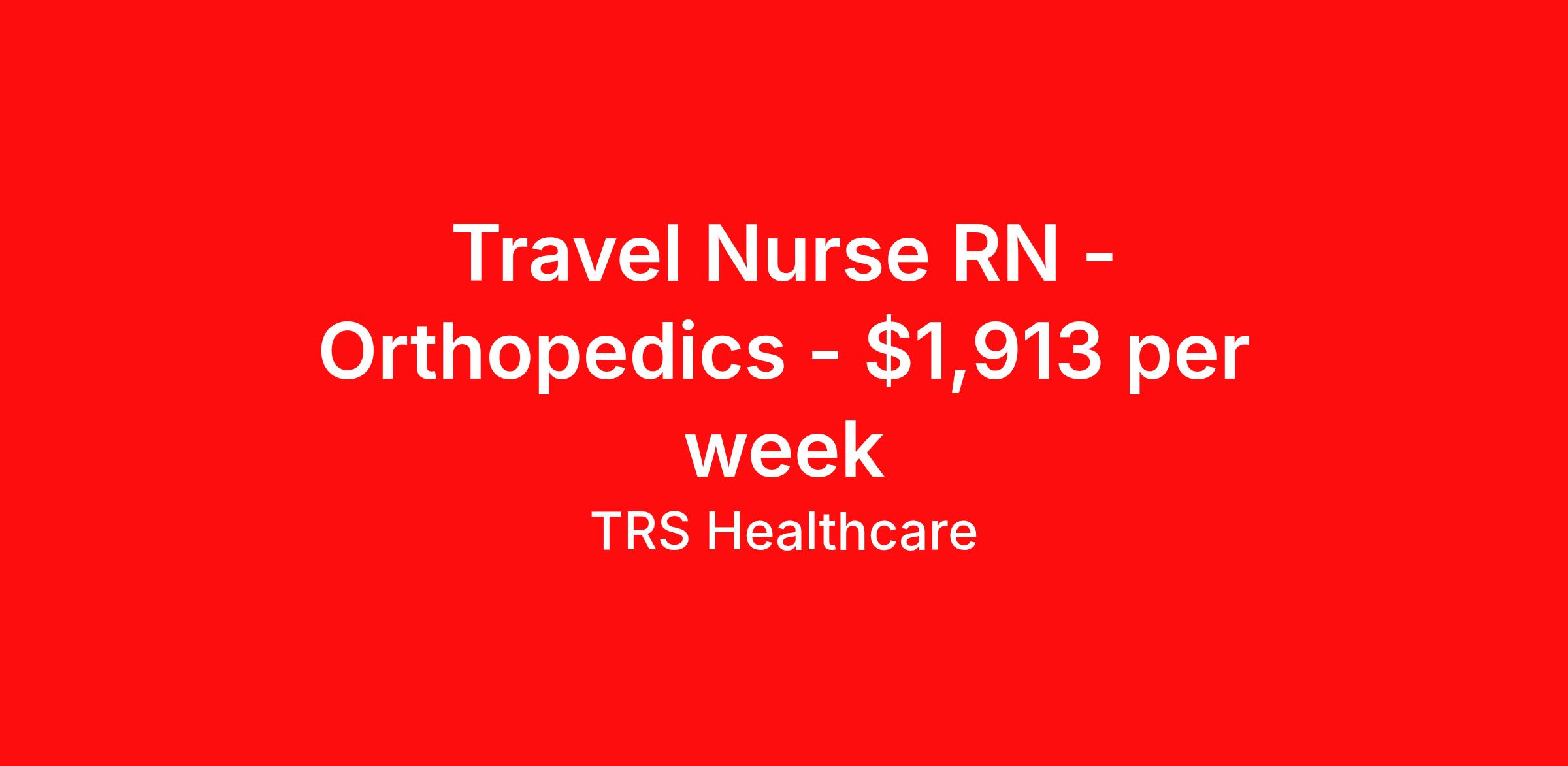 TRS Healthcare is seeking a travel nurse RN Orthopedics for a travel nursing job in Lafayette, Louisiana. Job Description & Requirements Specialty: Orthopedics Discipline: RN Start Date: 04/06/2026 Duration: 13 weeks 36 hours per week Shift: 12 hours, nights Employment Type: Travel TRS Healthcare Job ID 1436514. Pay package is based on 12 hour shifts and 36 hours per week (subject to confirmation) with tax-free stipend amount to be determined. Posted job title: Medical Surgical - Orthopedics Registered Nurse About TRS Healthcare TRS Healthcare has been a leader in the healthcare staffing industry for over 25 years, providing exceptional career opportunities for travel nurses and allied health professionals. An RN-founded, woman-owned company, TRS Healthcare has team members in all 50 states. We recruit and support registered nurses, licensed practical nurses, surgical technicians, respiratory therapists, imaging technologists, laboratory specialists, and other experienced nursing and allied healthcare professionals. We staff hundreds of healthcare facilities across the U.S. in urban, rural, and underserved areas, including multi-state hospital systems, critical access hospitals, rural community hospitals, long-term care facilities, trauma centers, standalone clinics, and more. Learn more about TRS Healthcare at trshealthcare.com .