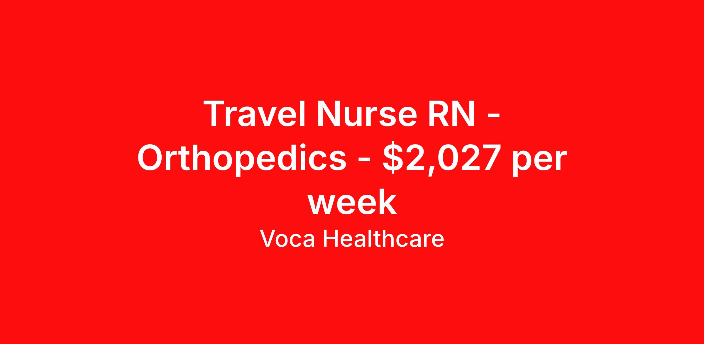 Voca Healthcare is seeking a travel nurse RN Orthopedics for a travel nursing job in Greensboro, North Carolina. Job Description & Requirements Specialty: Orthopedics Discipline: RN Start Date: 03/23/2026 Duration: 13 weeks 36 hours per week Shift: 12 hours, days Employment Type: Travel Benefits available on 1st of the month after start: Holiday pay Weekly pay Retention bonus 401k retirement plan Medical benefits Dental benefits Vision benefits Referral bonus About Voca Healthcare As a Voca Traveler, you will gain new clinical skills, visit amazing places and meet awesome healthcare professionals. As a travel health professional, your experience and dedication to patient care is in high demand throughout the United States. Whether you are a veteran traveler looking for your next opportunity, or you are looking to travel for the first time, Voca is here to support you. Voca’s experienced and dedicated travel team works in concert with you every step of the way. Our long-standing partnerships with some of the most respected and recognized healthcare organizations in the country allow us to identify career opportunities to help you increase your knowledge and experience while working with some of the best physicians and healthcare professionals in the world. At Voca, we strongly believe a better career results in a happier you. We are here to help you find a position that is professionally and personally rewarding. Benefits Holiday Pay 401k retirement plan Medical benefits Dental benefits Vision benefits Guaranteed Hours