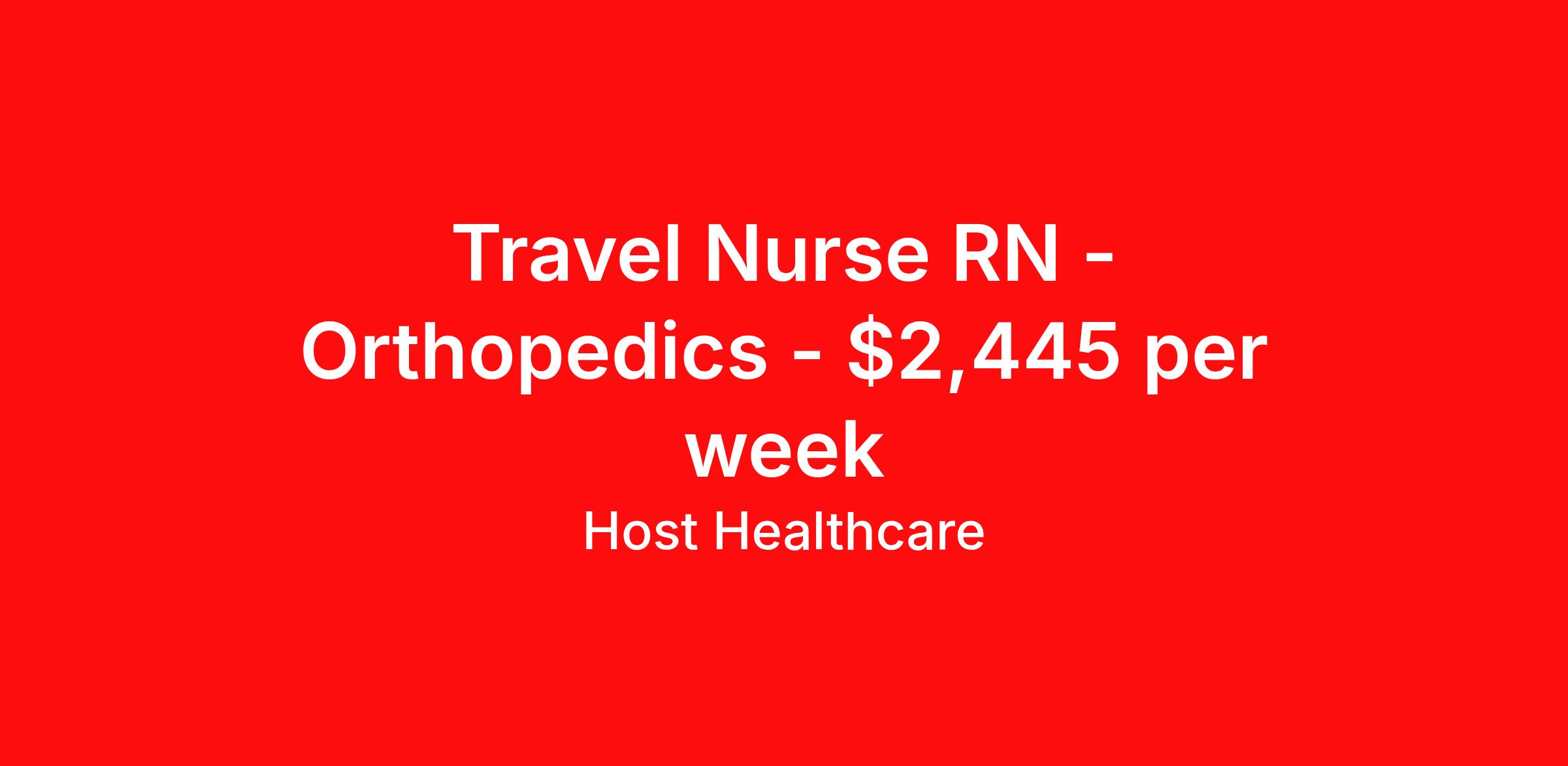 Host Healthcare is seeking a travel nurse RN Orthopedics for a travel nursing job in Reno, Nevada. Job Description & Requirements Specialty: Orthopedics Discipline: RN Start Date: 04/20/2026 Duration: 13 weeks 40 hours per week Shift: 8 hours Employment Type: Travel Host Healthcare Job ID a1fVX000002xQRxYAM. Pay package is based on 8 hour shifts and 40 hours per week (subject to confirmation) with tax-free stipend amount to be determined. Posted job title: RN - Orthopedics About Host Healthcare At Host Healthcare, we provide a truly comfortable experience as you explore your travel nursing, therapy, or allied career. We make your travel healthcare journey easy by taking care of all the details, so you don’t have to. We are on a mission to help others live better and we do this by helping the healers of the world be as comfortable as possible. With access to tens of thousands of travel nursing, therapy, and allied jobs in all 50 states, our responsive and friendly recruiters find your dream position based on what’s important to you. During your assignment, get access to premium benefits, including Day 1 medical that continues up to 30 days between assignments, 401K matching, travel reimbursements, dedicated housing support, and more. We also offer 24/7 support from our team and access to our on-staff clinicians so you can feel comfortable and confident throughout your entire assignment. Travel comfortably with Host Healthcare. Benefits Referral bonus School loan reimbursement Vision benefits Wellness and fitness programs Company provided housing options License and certification reimbursement Life insurance Medical benefits Mileage reimbursement Pet insurance Discount program Employee assistance programs Guaranteed Hours Health savings account Holiday Pay 401k retirement plan Continuing Education Dental benefits