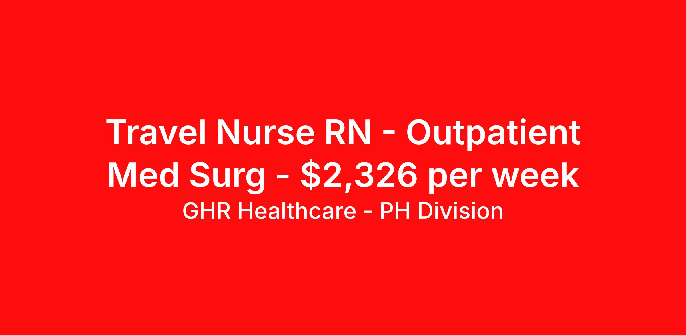GHR Healthcare - PH Division is seeking a travel nurse RN Outpatient Med Surg for a travel nursing job in Havre, Montana. Job Description & Requirements Specialty: Med Surg Discipline: RN Start Date: ASAP Duration: 13 weeks 36 hours per week Shift: 12 hours Employment Type: Travel Travel Registered Nurse (RN) – Outpatient Dialysis | Havre, MT (59501) Travel Registered Nurse (RN) – Outpatient Dialysis in Havre, Montana | 13-week travel nursing contract; RN license required. Join a dedicated dialysis team delivering hemodialysis and ESRD care while enjoying Big Sky Country. Job Details Position: Outpatient Registered Nurse (RN) – Dialysis / Dialysis Nurse Location: Havre, Montana (zip 59501) — Montana travel nurse opportunity Employment Type: Travel Contract (travel nursing) Start Date: February 25, 2026 End Date: May 27, 2026 Contract Duration: 13 weeks Guaranteed Hours: 36 hours per week Shift: 12-hour rotating shifts (varies depending on need) Estimated Weekly Pay: $2130 - $2250 Job Requirements Active Registered Nurse (RN) license – Montana or compact state (required) Minimum 1 year of RN experience; dialysis experience, hemodialysis, or ESRD care preferred Ability to work 12-hour rotating shifts in an outpatient dialysis setting Must be a travel nurse from outside a 250-mile radius of Havre, MT (in-state applicants must meet this requirement) Strong clinical assessment, planning, and patient care skills relevant to dialysis nursing Responsibilities Assess, plan, implement, and evaluate care for patients receiving dialysis treatments in the outpatient Dialysis Unit Provide hemodialysis nursing care, monitor dialysis treatments, and support patients with ESRD Serve as a clinical resource for dialysis patients and interdisciplinary healthcare staff Deliver age-appropriate, patient-centered care and education to dialysis patients Collaborate with nephrology providers and the interdisciplinary team for optimal patient outcomes Maintain accurate nursing documentation, uphold infection control and patient safety standards Apply now to join our Montana healthcare team as a Travel Outpatient Registered Nurse in the Dialysis Unit. This travel nursing role is ideal for RNs seeking dialysis nurse jobs, travel nurse opportunities, and Montana nursing jobs in a scenic Big Sky Country community! Benefits 401K with Matching, Healthcare, Dental and Vision Equal Opportunity We are an equal opportunity employer and value diversity across our organization. We do not discriminate on the basis of race, religion, color, national origin, gender, sexual orientation, age, marital status, veteran status, or disability status. Planet Healthcare Job ID 454507. Pay package is based on 12 hour shifts and 36 hours per week (subject to confirmation) with tax-free stipend amount to be determined. Posted job title: Outpatient | RN About GHR Healthcare - PH Division For over 30 years, GHR Healthcare has been the bridge between healthcare professionals and the facilities that need them nationwide. We're committed to uncovering your ideal fit, supported by GHR's dedication to competitive compensation, transparent communication, and a devoted team that genuinely cares about your career journey. You can trust us to stand by your side as your advocate, confidante, and partner in advancing your career. At GHR, care and consideration are at the heart of everything we do. Visit ghrhealthcare.com to learn more.