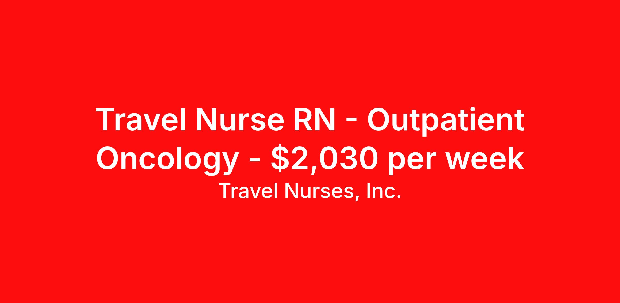 Travel Nurses, Inc. is seeking a travel nurse RN Outpatient Oncology for a travel nursing job in Sidney, Montana. Job Description & Requirements Specialty: Oncology Discipline: RN Start Date: ASAP Duration: 13 weeks 32 hours per week Shift: 8 hours Employment Type: Travel Travel Nurses, Inc. Job ID 307090. Pay package is based on 8 hour shifts and 32 hours per week (subject to confirmation) with tax-free stipend amount to be determined. Posted job title: $90 Eastern MT-Outpatient Chemotherapy/Infusion RN About Travel Nurses, Inc. Travel Nurses, Inc. is a leading healthcare staffing agency that provides healthcare professionals with opportunities to work across the country. Founded by nurses in 1988, TNI has more than 30 years of experience in the industry. The agency initially focused on staffing operating room settings in the MidSouth. However, this quickly evolved to encompass all nursing specialties and allied health fields nationwide. At the heart of our mission is a profound respect for nurses, whom we consider the cornerstone of healthcare. This acknowledgment extends beyond the nursing profession alone. Travel Nurses, Inc. now proudly embraces a wide array of healthcare professionals, recognizing their crucial roles in our collective mission. Travel Nurses, Inc. is dedicated to providing comprehensive support and opportunities that will help facilitate complete career mobility in the healthcare field. Our commitment to transparency ensures that all professionals, not just nurses, can confidently accept any assignment without financial uncertainties. We prioritize our professionals’ well-being with comprehensive benefits packages, including day-one healthcare coverage, competitive salaries, bonuses and incentives. This underscores our unwavering commitment to offering the best possible rewards and support for all the professionals we serve. Benefits Weekly pay Continuing Education 401k retirement plan Wellness and fitness programs Mileage reimbursement Referral bonus Employee assistance programs Medical benefits Dental benefits Vision benefits Benefits start day 1 License and certification reimbursement Life insurance Retention bonus