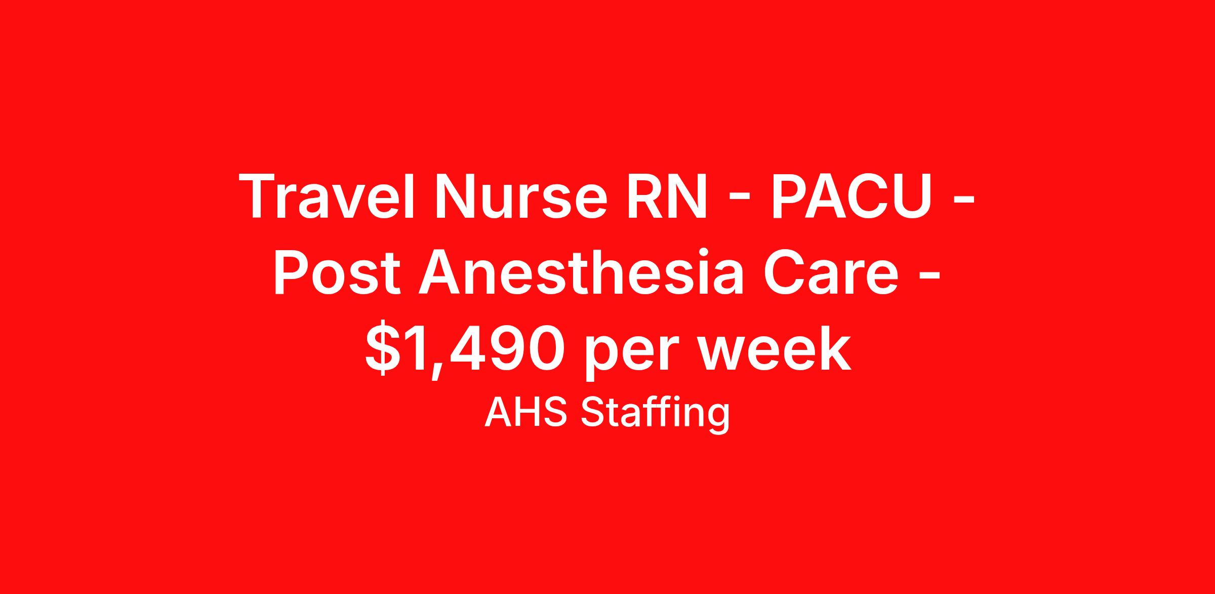 Travel Nurse RN - PACU - Post Anesthesia Care - $1,490 per week