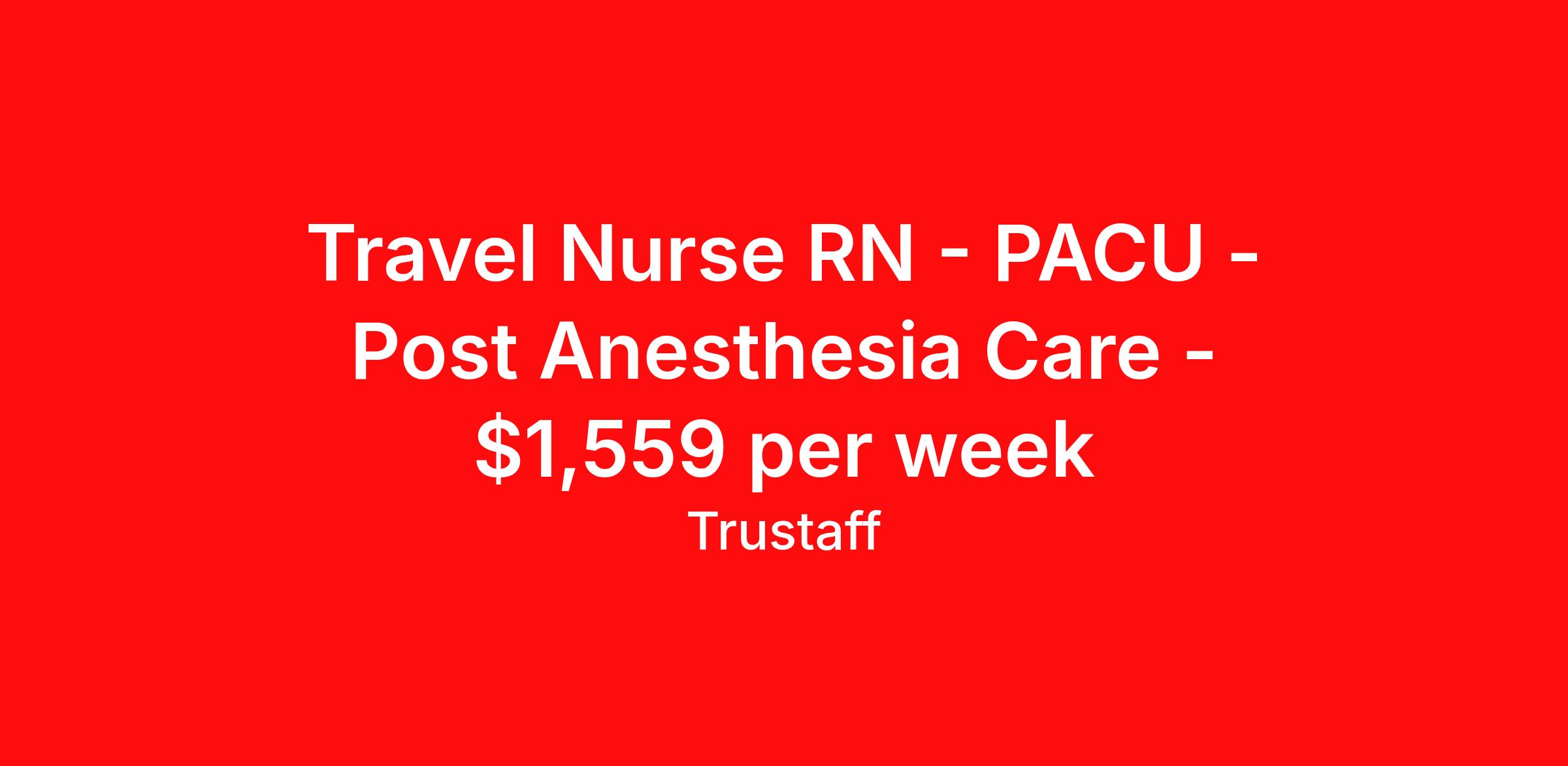 Travel Nurse RN - PACU - Post Anesthesia Care - $1,559 per week