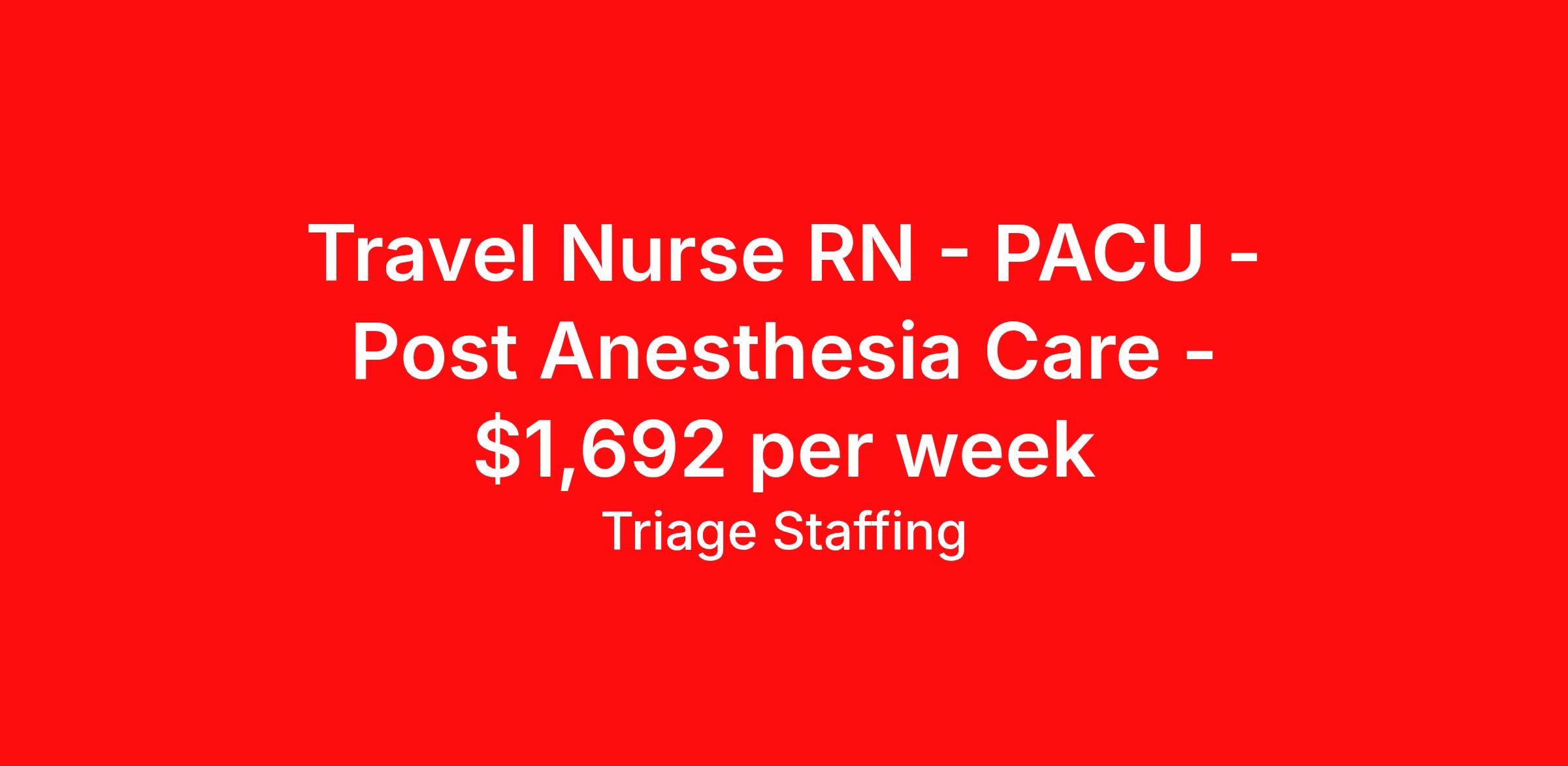 Travel Nurse RN - PACU - Post Anesthesia Care - $1,692 per week