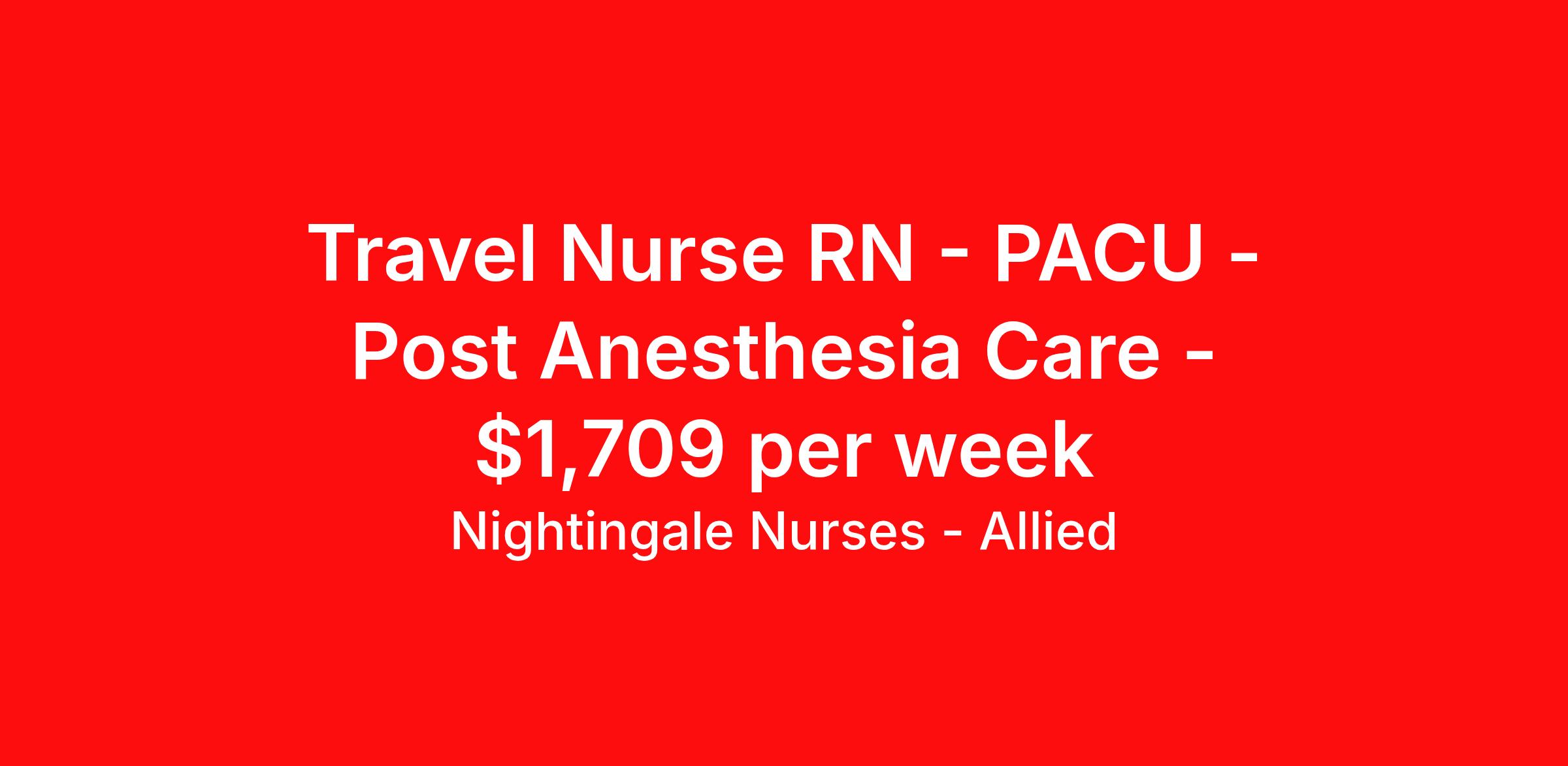 Nightingale Nurses - Allied is seeking a travel nurse RN PACU - Post Anesthesia Care for a travel nursing job in Louisville, Kentucky. Job Description & Requirements Specialty: PACU - Post Anesthesia Care Discipline: RN Start Date: ASAP Duration: 13 weeks 36 hours per week Shift: 12 hours, rotating Employment Type: Travel
