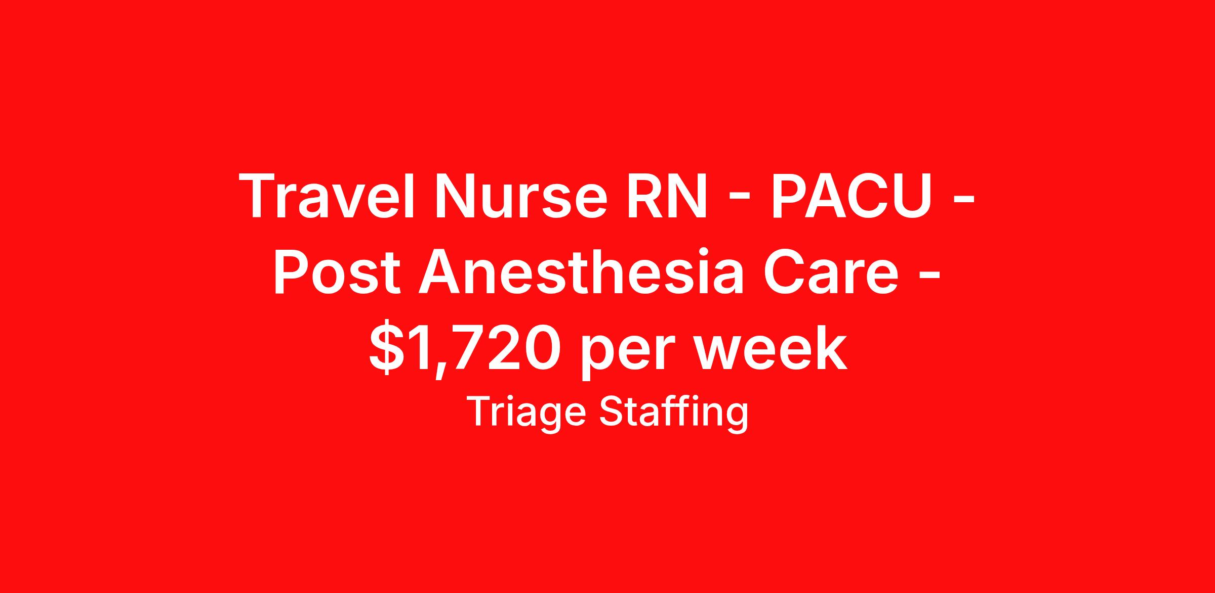 Travel Nurse RN - PACU - Post Anesthesia Care - $1,720 per week