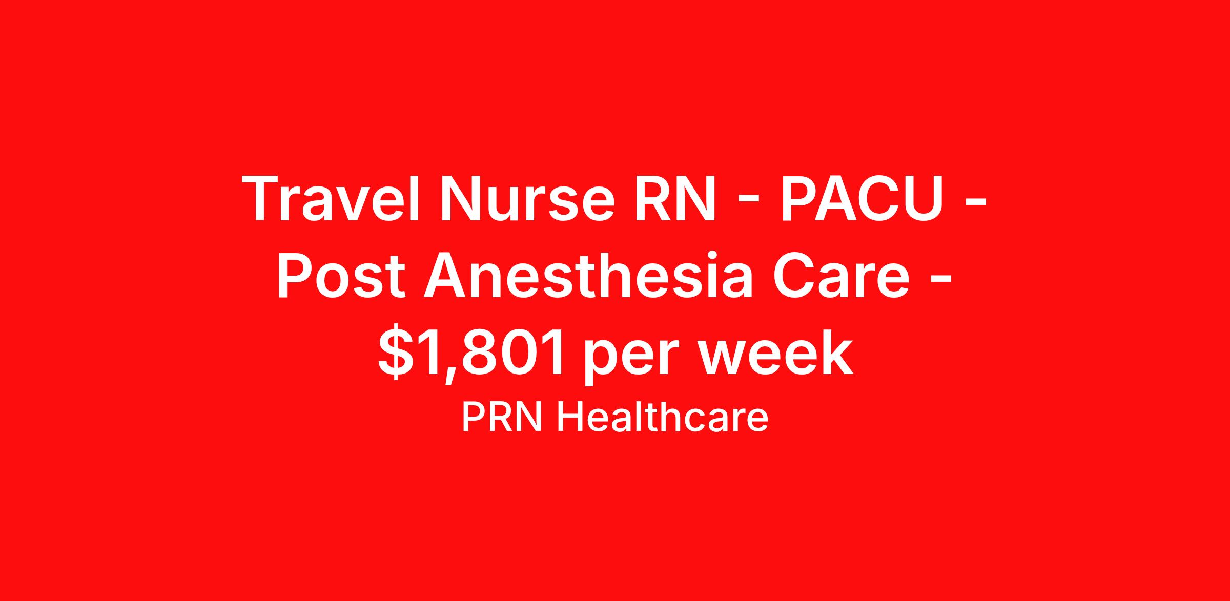 Travel Nurse RN - PACU - Post Anesthesia Care - $1,801 per week