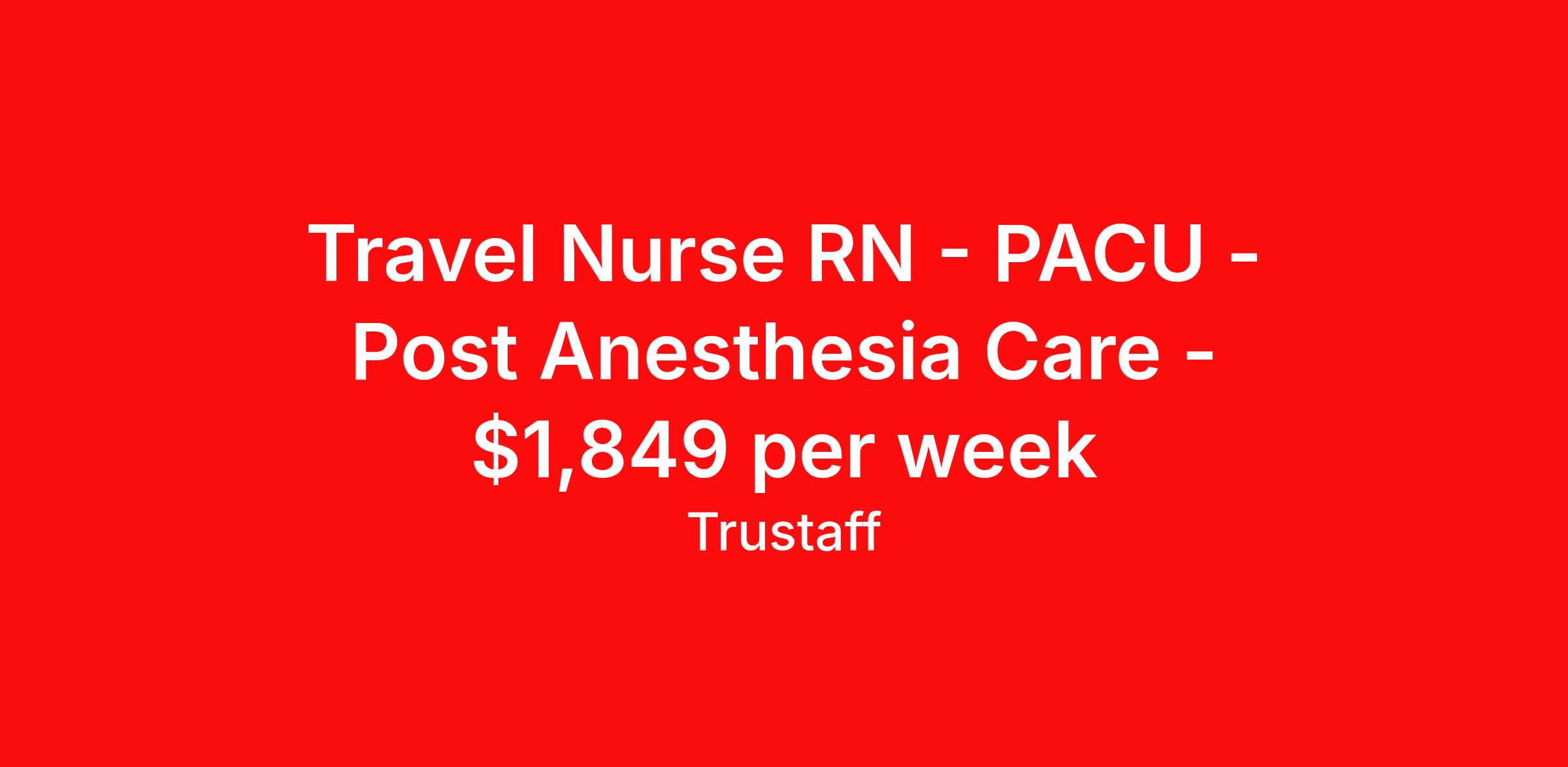 Travel Nurse RN - PACU - Post Anesthesia Care - $1,849 per week