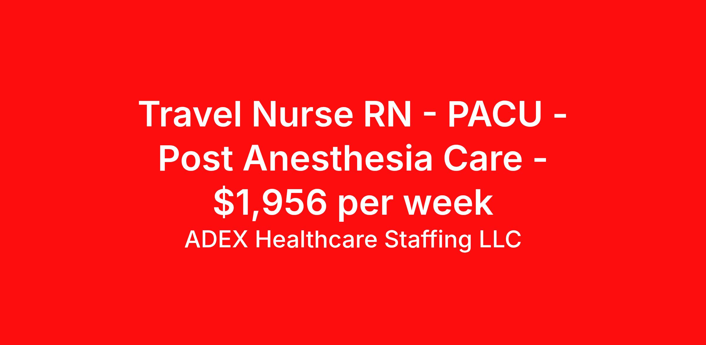 ADEX Healthcare Staffing LLC is seeking a travel nurse RN PACU - Post Anesthesia Care for a travel nursing job in Beaumont, Texas. Job Description & Requirements Specialty: PACU - Post Anesthesia Care Discipline: RN Start Date: 03/30/2026 Duration: 13 weeks 40 hours per week Shift: 10 hours, days Employment Type: Travel RN Position Job Notes: Travel or Local Registered Nurse needed for ASAP start. A minimum of 2 years of recent hospital bedside experience is required. Candidates must be able to start within 5 weeks. Opportunity for extension upon successful completion of the initial assignment. $750 referral bonus available. Opportunity: RN - PACU Job Details: • Work 4x10 hour shifts per week with variable start times between 9:30 AM to 12:00 PM • Critical care experience required • Care for pediatric to geriatric post-surgical patients • Required certifications: Current BLS (AHA only), Current ACLS (AHA only), Current PALS (AHA only) or ENPC certification • Texas RN license or compact license required • Bachelor of Science Degree in Nursing preferred • 1 year of experience in related nursing specialty preferred • Perioperative RN Residency or recent OR/Perioperative setting experience preferred • Must attend New Nurses Orientation within first 30 days of hire • Complete organizational entry competency validation and department-specific competency validation • Provide routine and complex nursing care using the nursing process • Administer medications and treatments while monitoring for side effects • Document patient history, symptoms, medications, and care provided • Assess learning needs and provide patient/family education • Temp to perm possibility available Facility: This healthcare facility is part of a comprehensive health system providing advanced medical services to the Southeast Texas region. The facility specializes in post-anesthesia care with a focus on perioperative services, caring for patients from pediatric to geriatric populations following surgical procedures. The organization emphasizes competency-based nursing practice and provides comprehensive orientation and ongoing education programs to ensure high-quality patient care. Location: Beaumont, TX Beaumont offers a unique blend of industrial heritage and natural beauty in Southeast Texas, with easy access to both Houston's metropolitan amenities and the Gulf Coast's recreational opportunities. The area provides affordable living costs and a strong sense of community, making it an attractive location for healthcare professionals seeking career growth in a supportive environment. Adex Job ID 993725. Pay package is based on 10 hour shifts and 40 hours per week (subject to confirmation) with tax-free stipend amount to be determined. About ADEX Healthcare Staffing LLC ADEX has been placing healthcare professionals across the US since 2004. Originally founded in Atlanta, GA, the company's headquarters are now located in Tampa, FL. JCAHO certified since 2009. Benefits Referral bonus