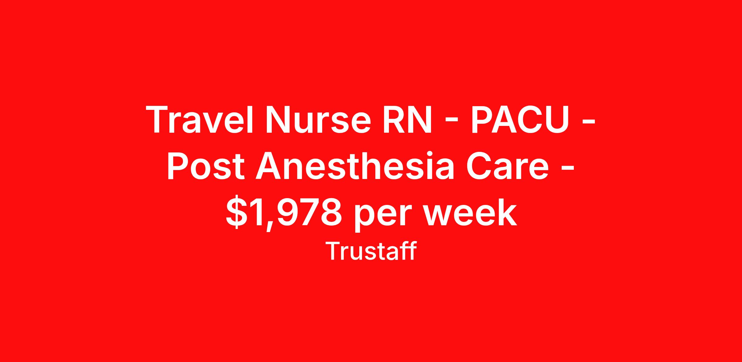 Travel Nurse RN - PACU - Post Anesthesia Care - $1,978 per week